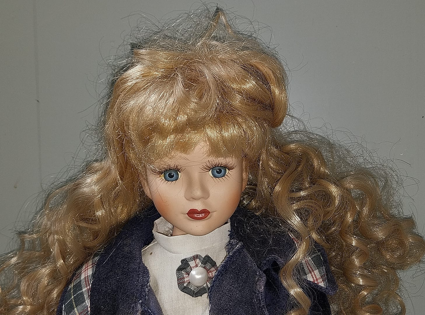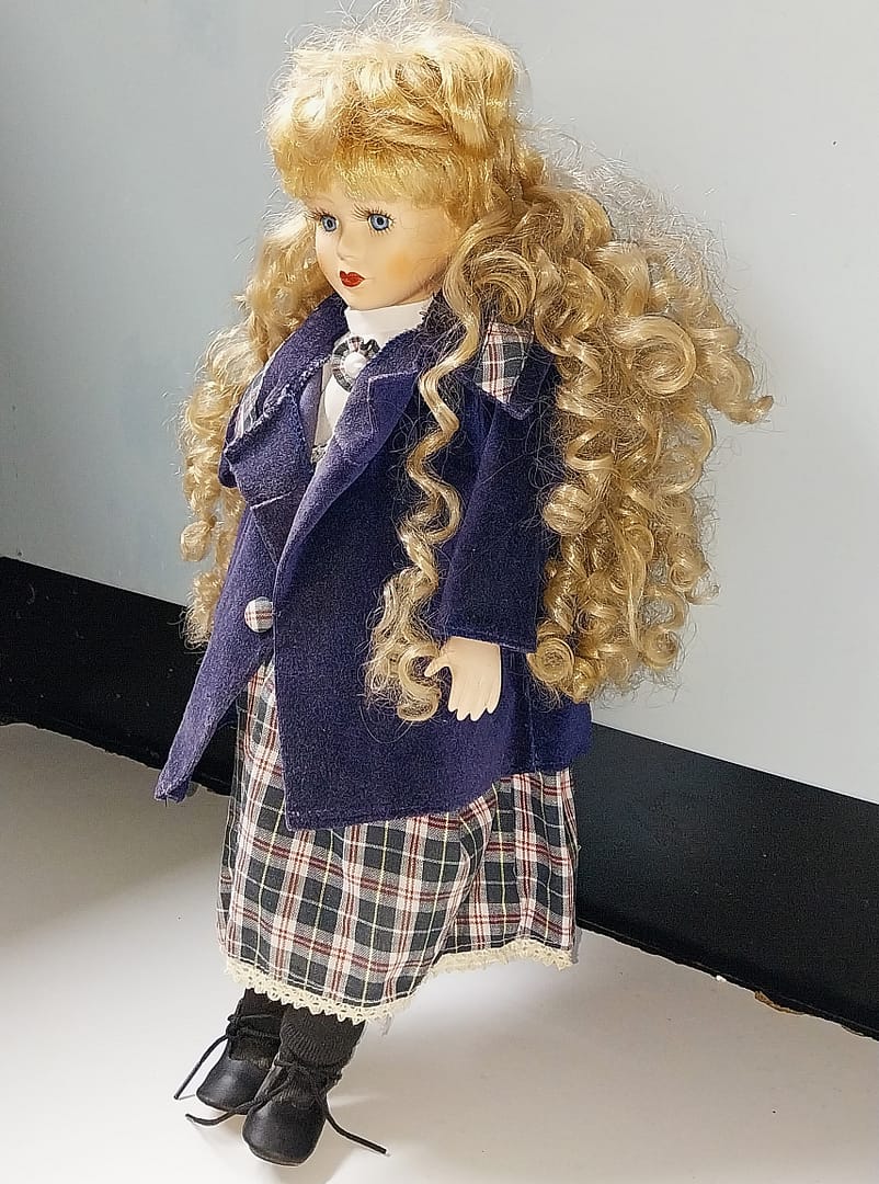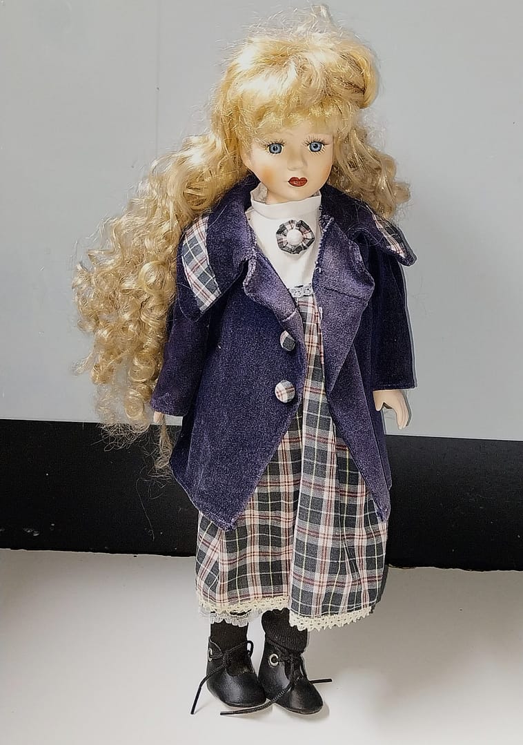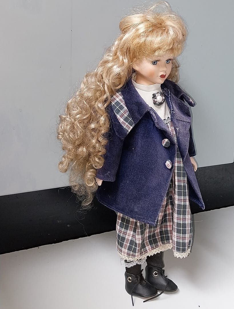 • Deze porseleinen pop is een beeldschone dame en is wel 38 cm hoog. De handen, benen en haar hoofd zijn van echt porselein.