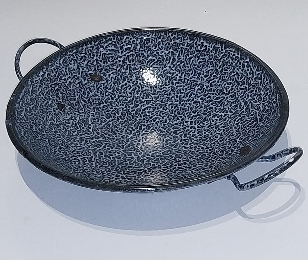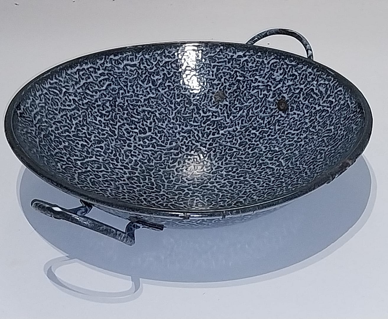 - Prachtige vintage geëmailleerde grijsgewolkte WOK om de brocante keuken net dat extra’s te geven. Deze set dateert uit de jaren ’60 en verkeert in goede staat.