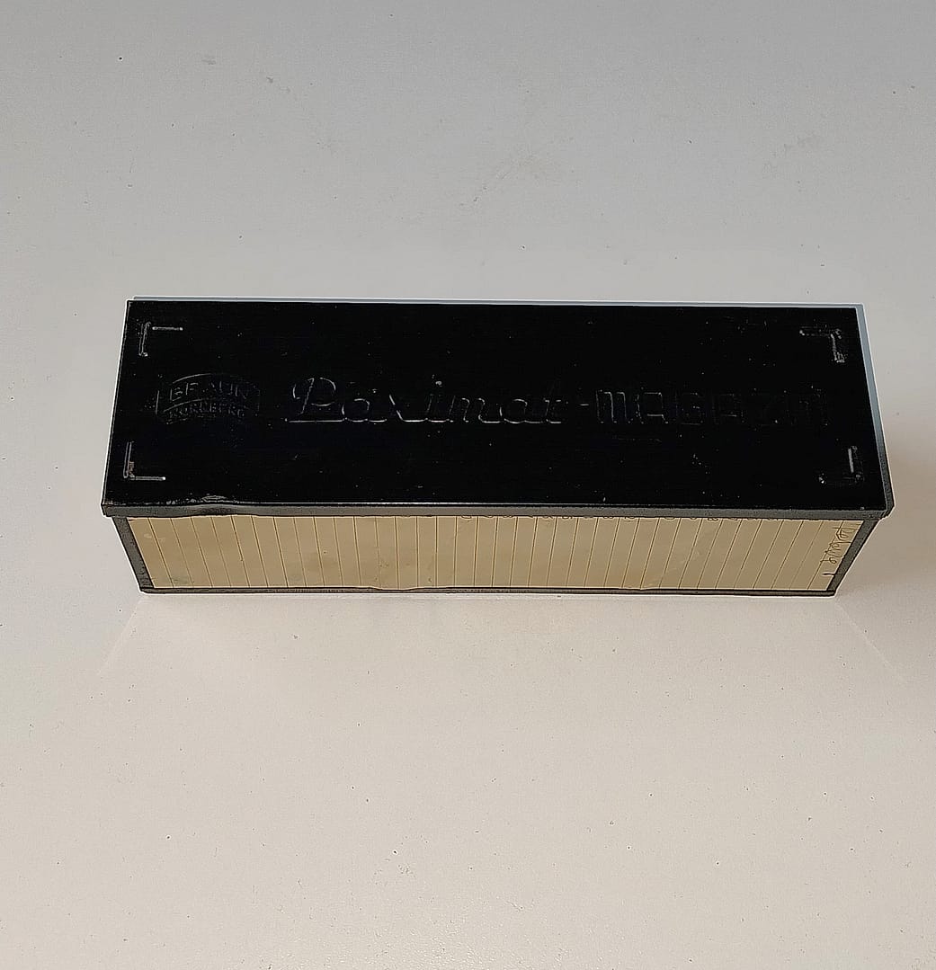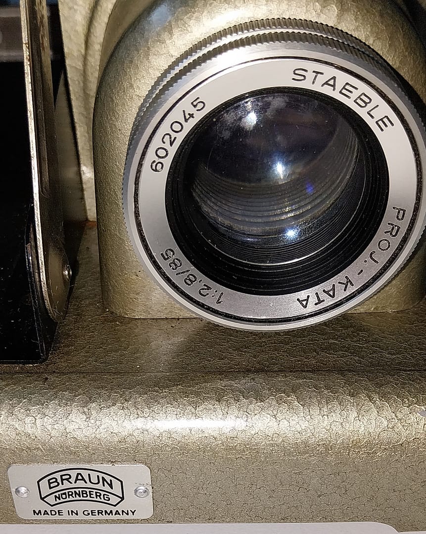 Dit is een vintage Braun Paximat diaprojector, een klassiek verzamelobject voor liefhebbers van oude fotografieapparatuur. Werd geproduceerd rond de jaren 50 en 60 door Braun Nürnberg in West-Duitsland. Het is een klassiek stuk analoge fotoapparatuur dat voor thuisgebruik werd gebruikt om vakantiefoto’s en familieherinneringen op een groot scherm te tonen.