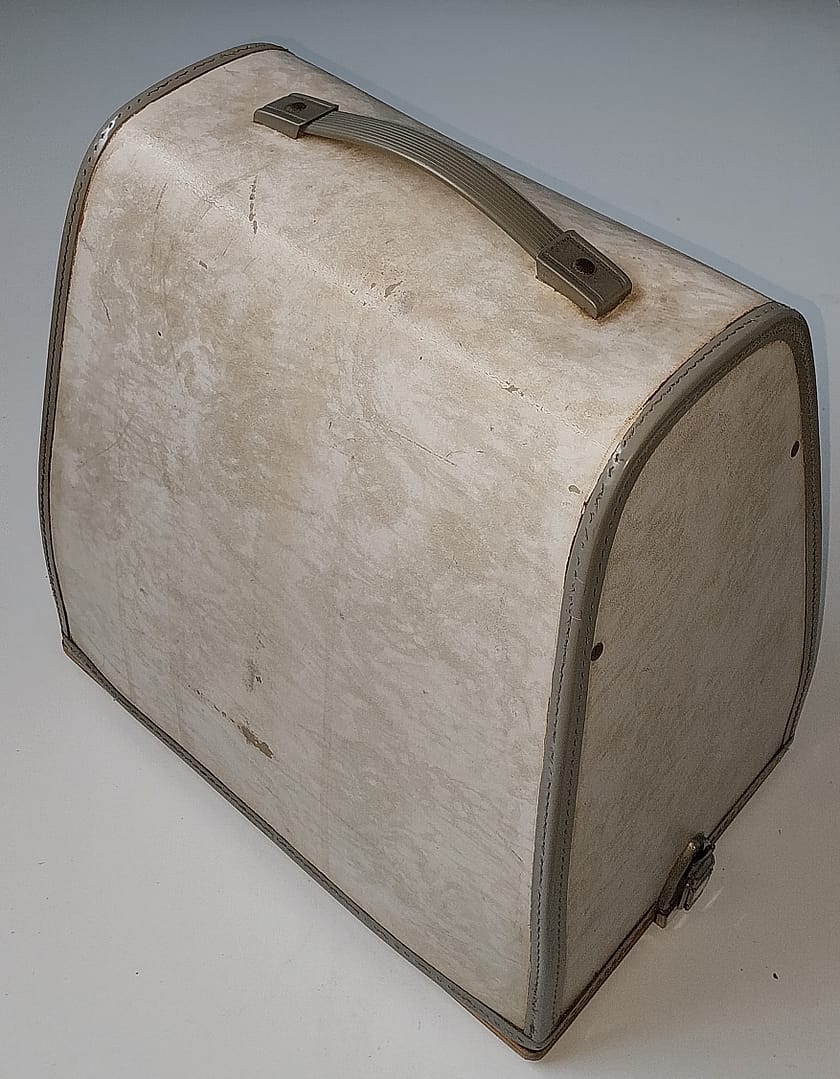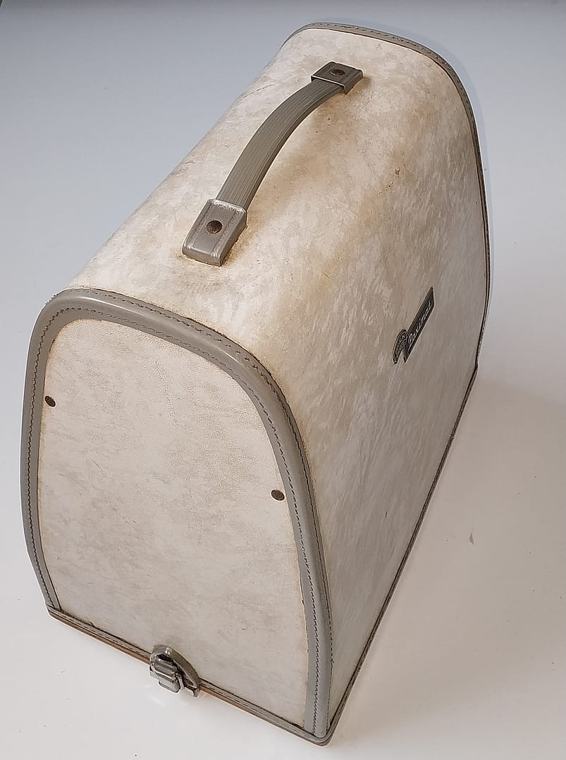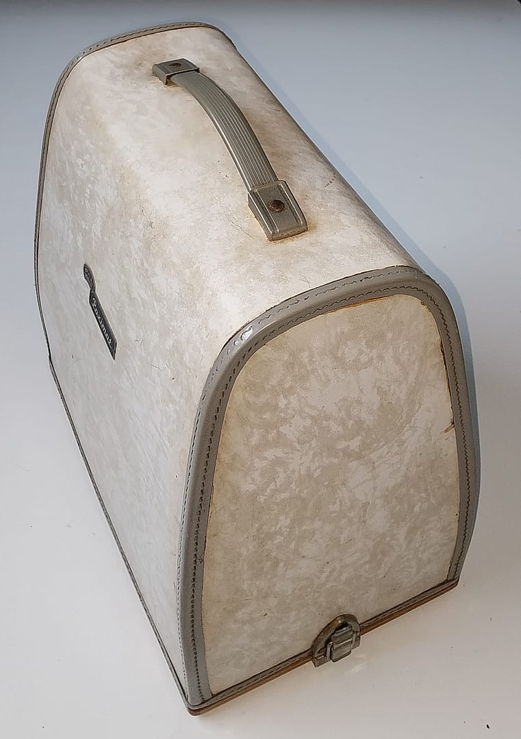 - Accessoires: Het getoonde exemplaar is compleet met een bijpassende opbergkoffer (in een Art Deco-stijl) met werkende sluitingen, extra lamp, 2 originele sledes met dia-ramen en de originele stroomkabel.