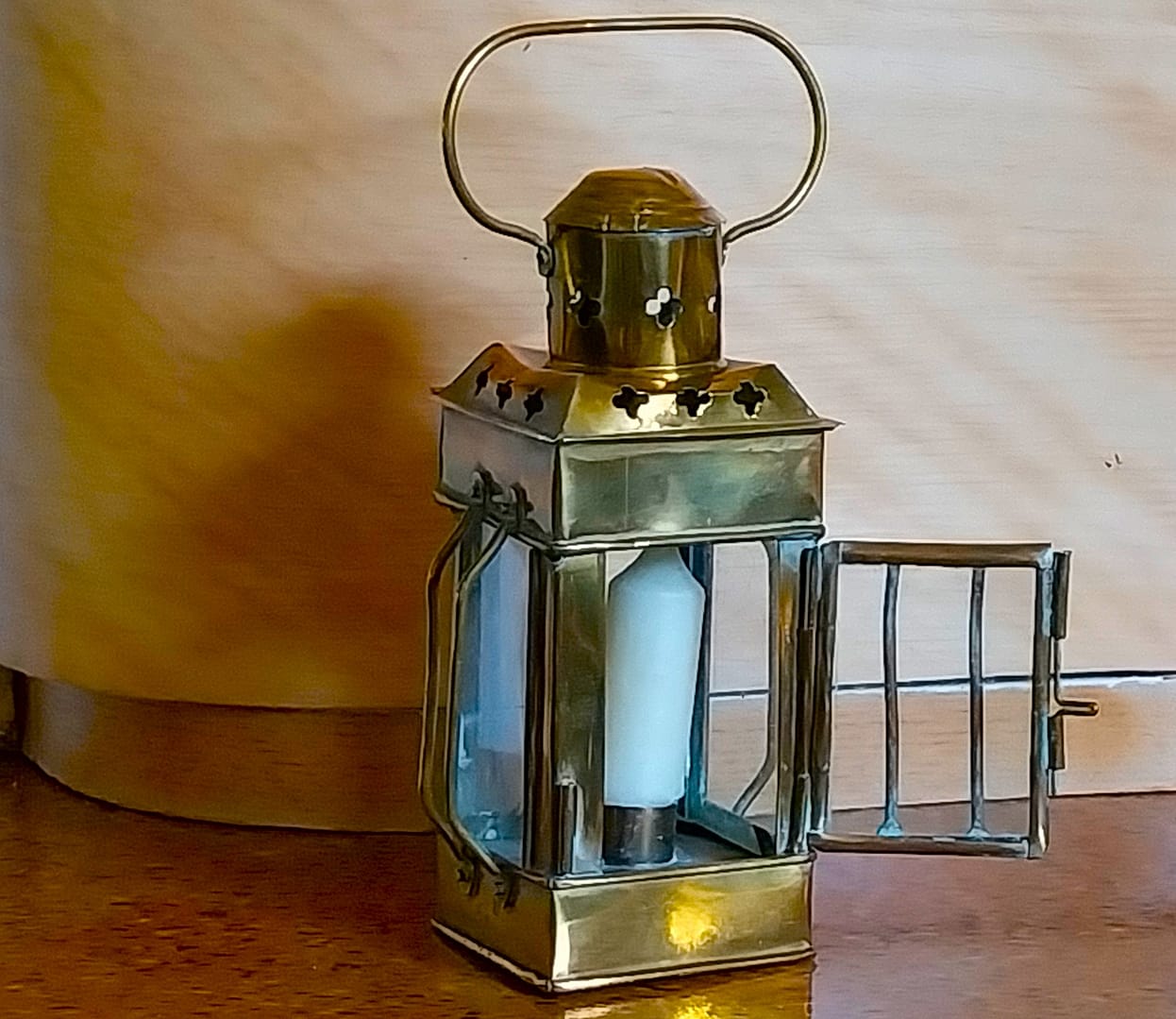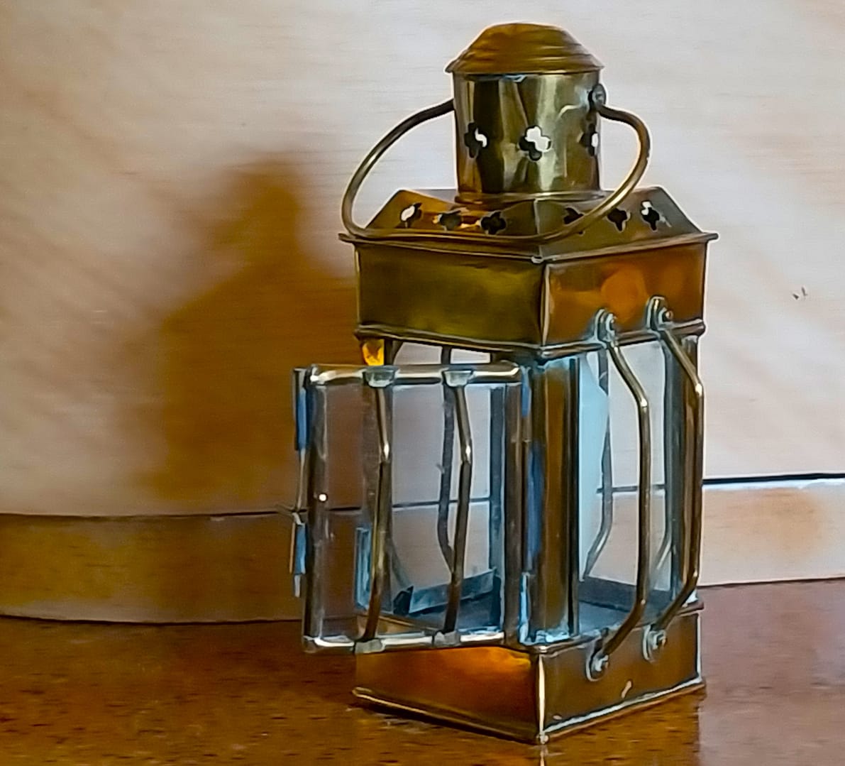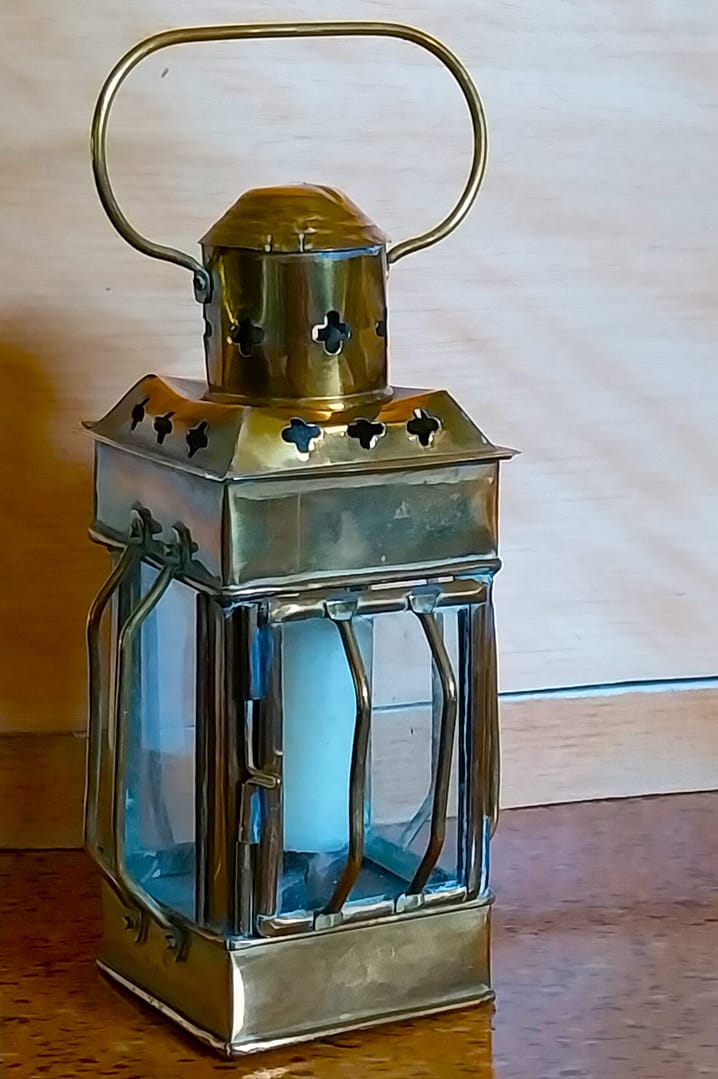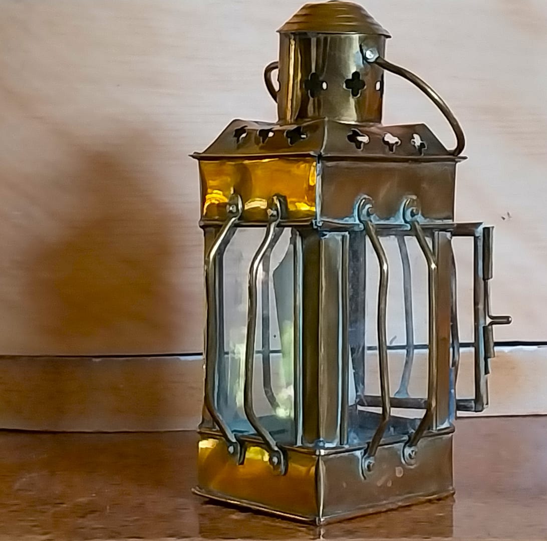 • Schattig klein messing lantaarn met kaarsje. Het deurtje opent en sluit soepel, het slotje werkt en het lantaartje is geheel in goede staat.