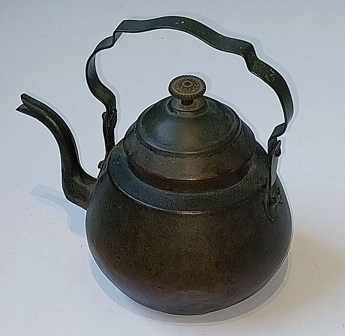 • Antiek koperen ketel, dateert van eind 19 eeuw. Op het hanvat staat nummer “3” in gegraveerd.
