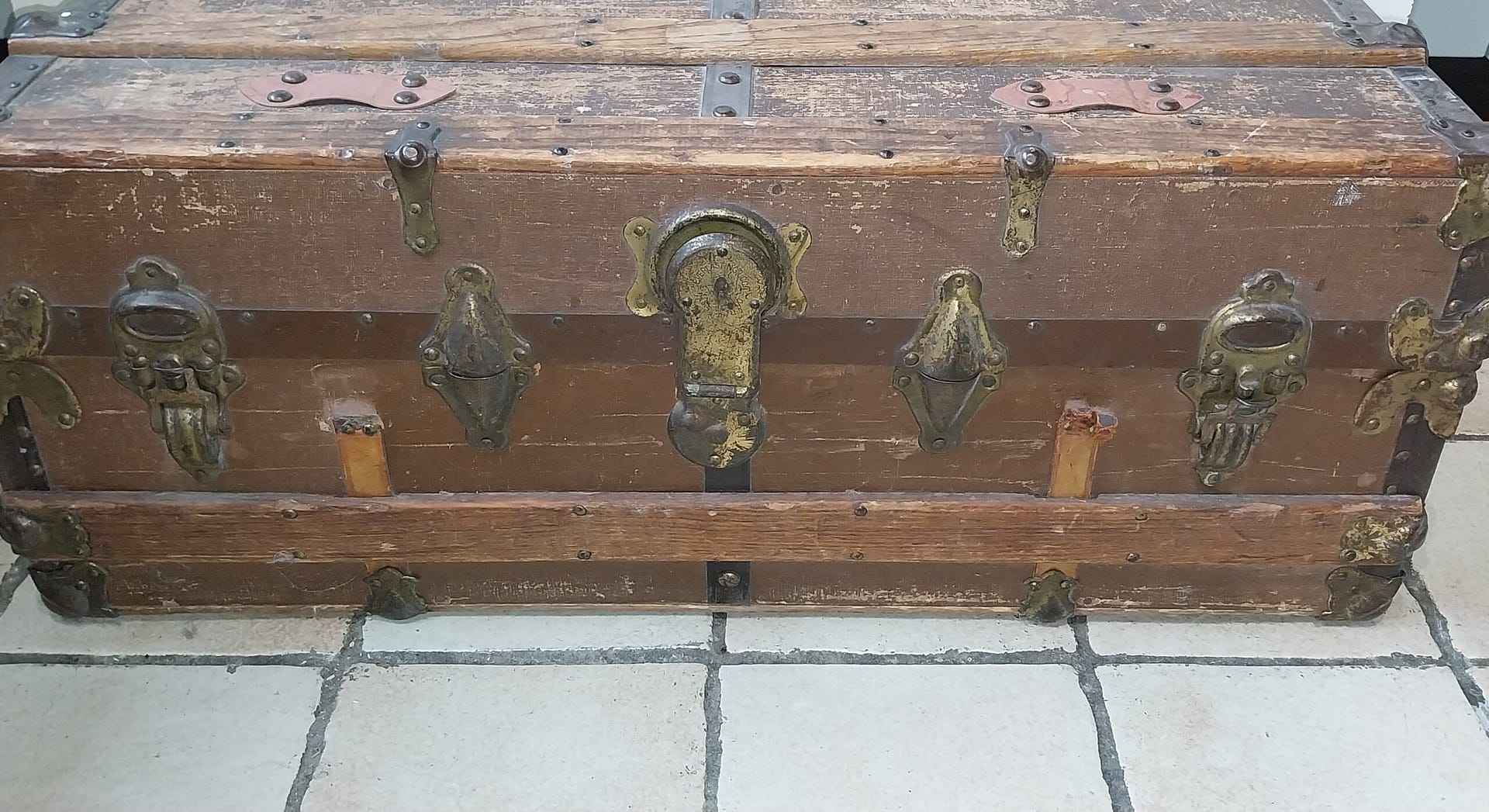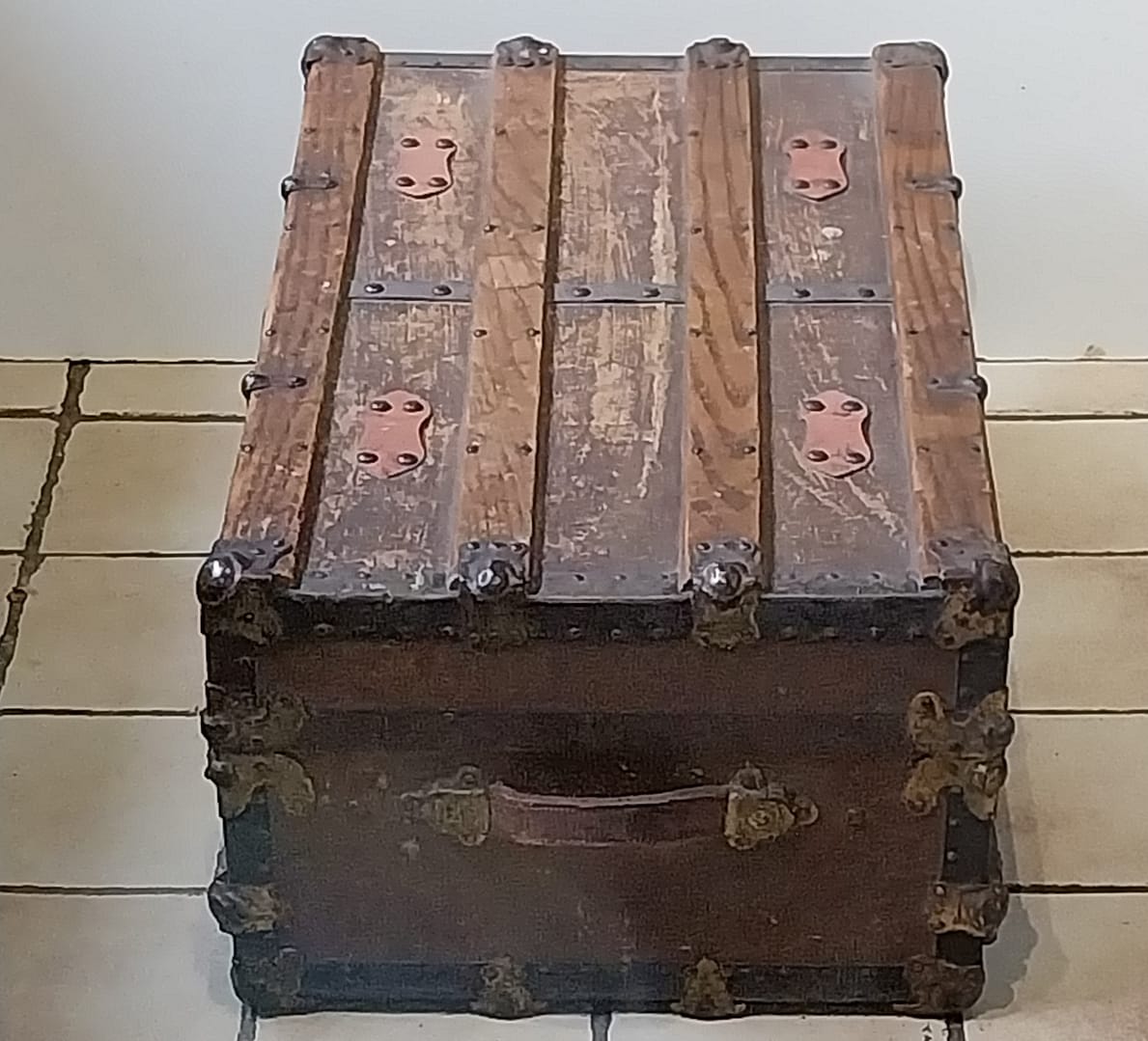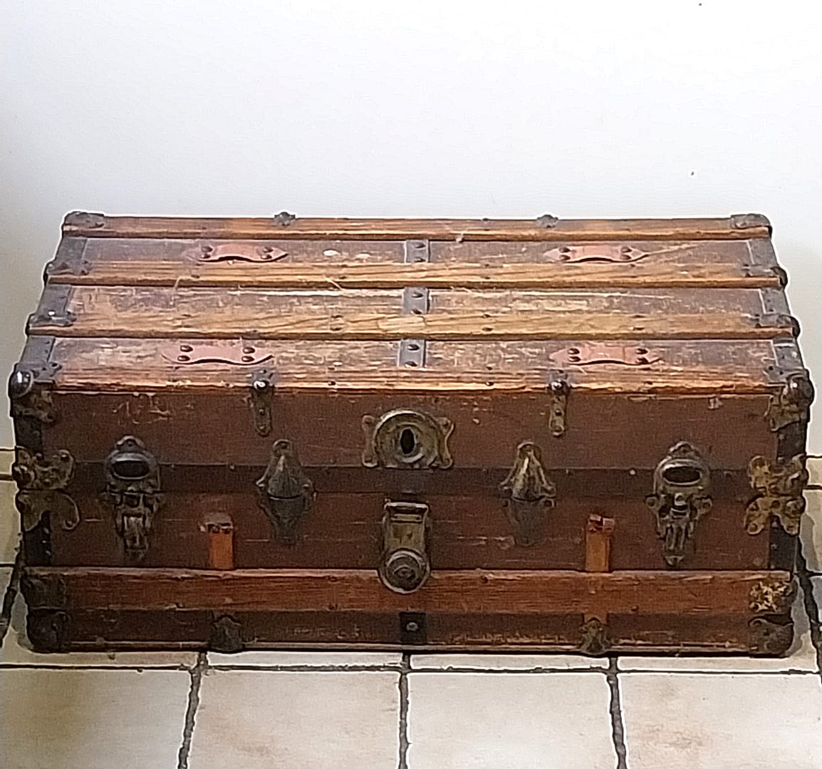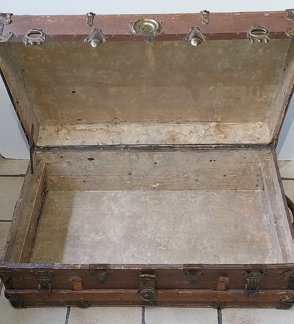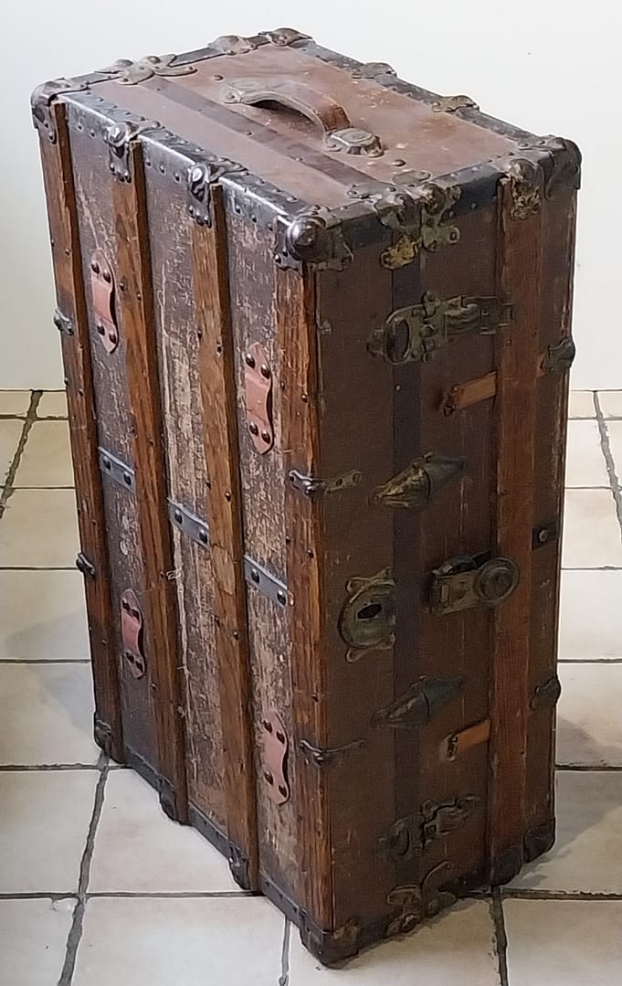 Antieke hutkoffer (ook wel stoombootkoffer of steamer trunk genoemd), een type reiskoffer dat in de late 19e en vroege 20e eeuw veelvuldig werd gebruikt voor lange bootreizen.