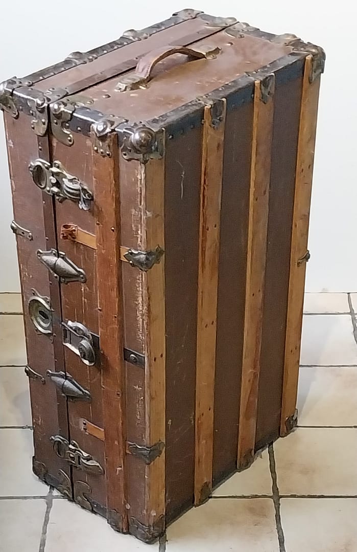 - Functie: Dit soort koffers dienden als een verplaatsbare kledingkast.