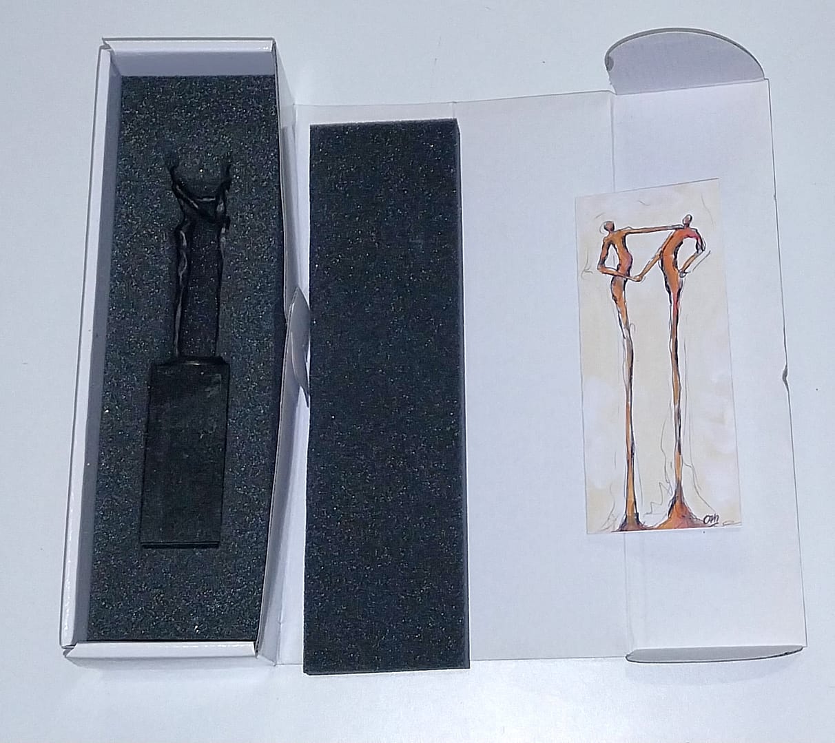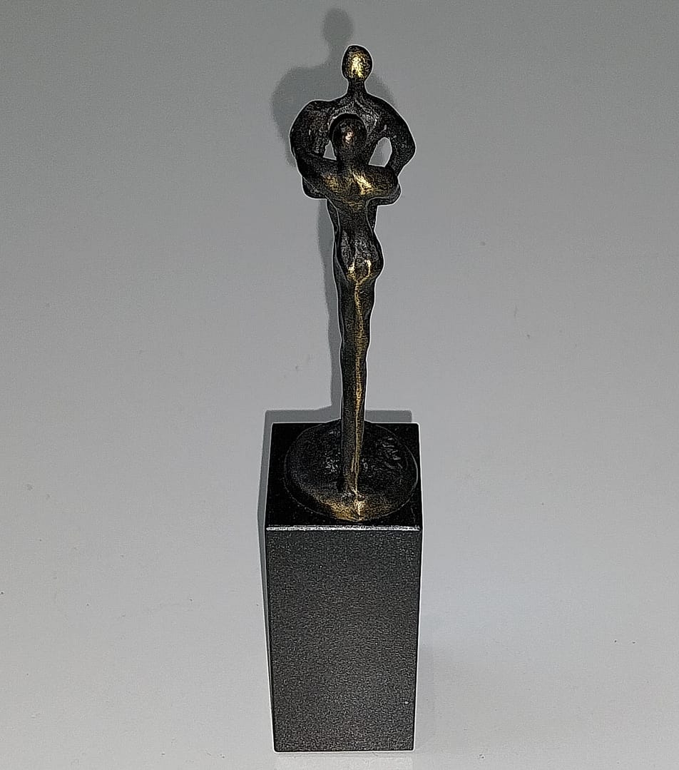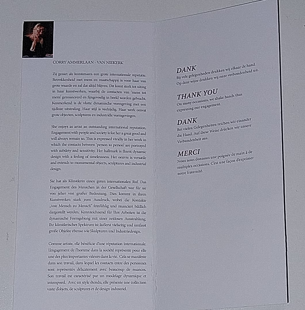 Dit is een bronzen beeldje van Corry Ammerlaan-van Niekerk, getiteld “DANK” en is uitgegeven door Artihove.
