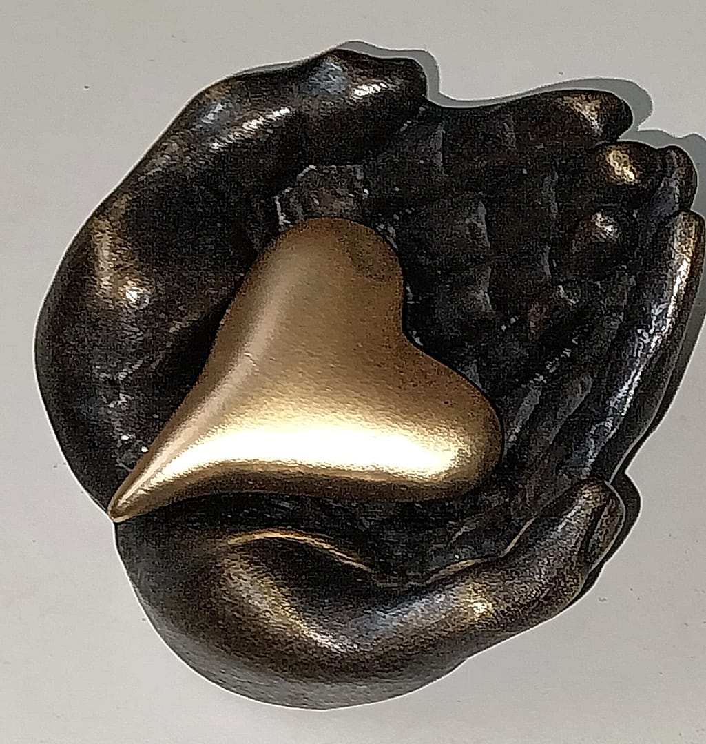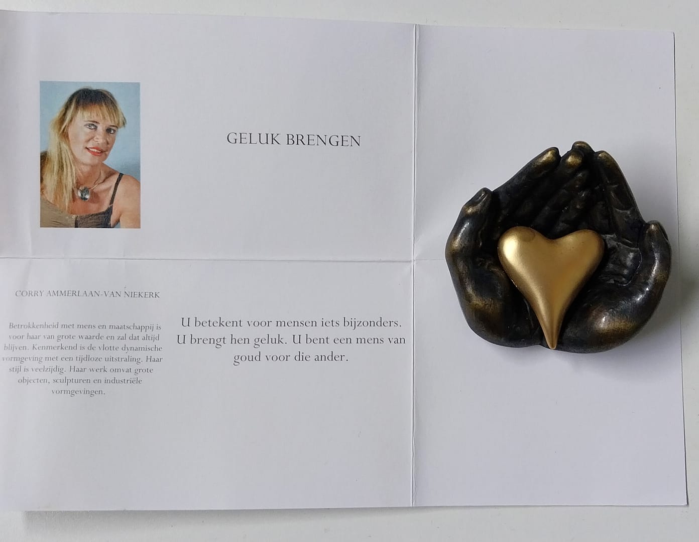 Bronzen sculptuur getiteld “Geluk Brengen”, ontworpen door de Nederlandse beeldend kunstenaar Corry Ammerlaan-van Niekerk. Het stelt twee handen voor die een goudkleurig hart koesteren, wat symbool staat voor genegenheid en het brengen van geluk aan anderen.