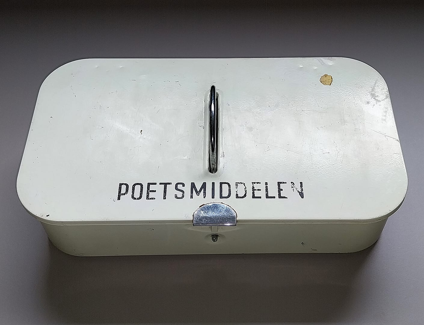 • Werd gebruikt in de jaren 50 en 60 voor het opbergen van schoenpoets of schoonmaakartikelen.