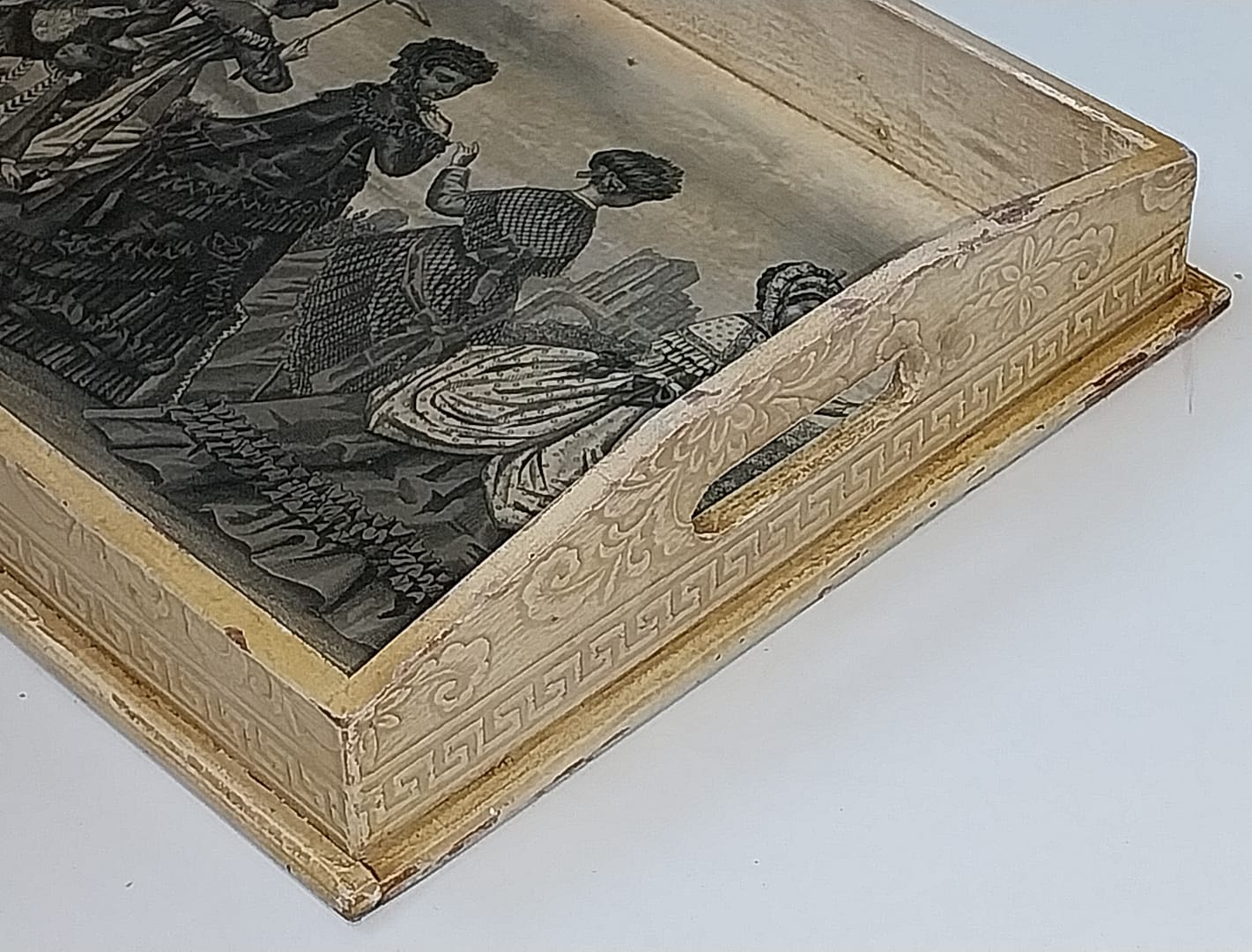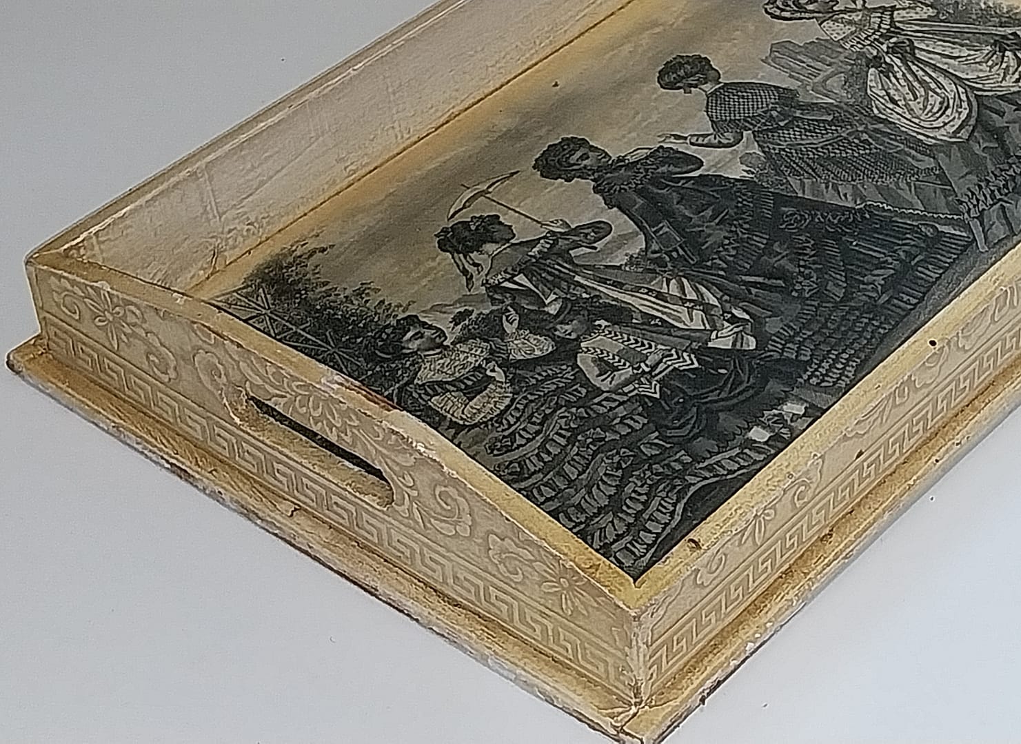 Brocant, doorleefd serveerblad, afbeelding Victoriaans stijl
