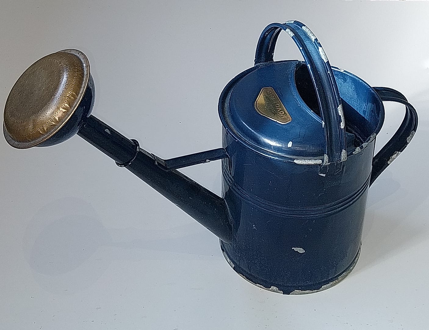 Brocante geemailleerde Zinken Giet + Koperen Sproeikop