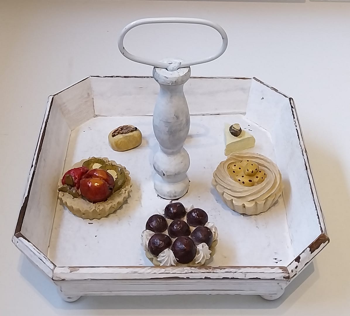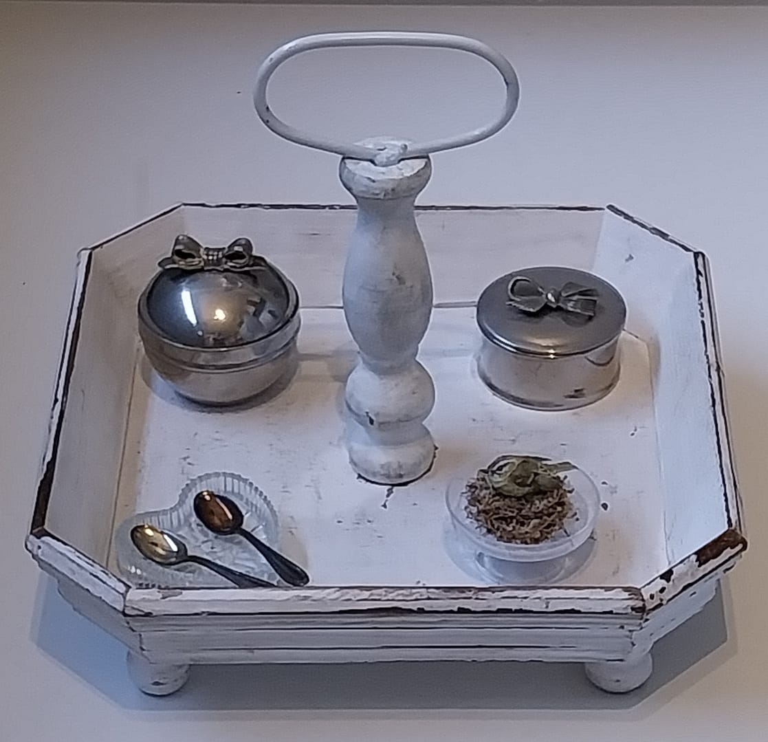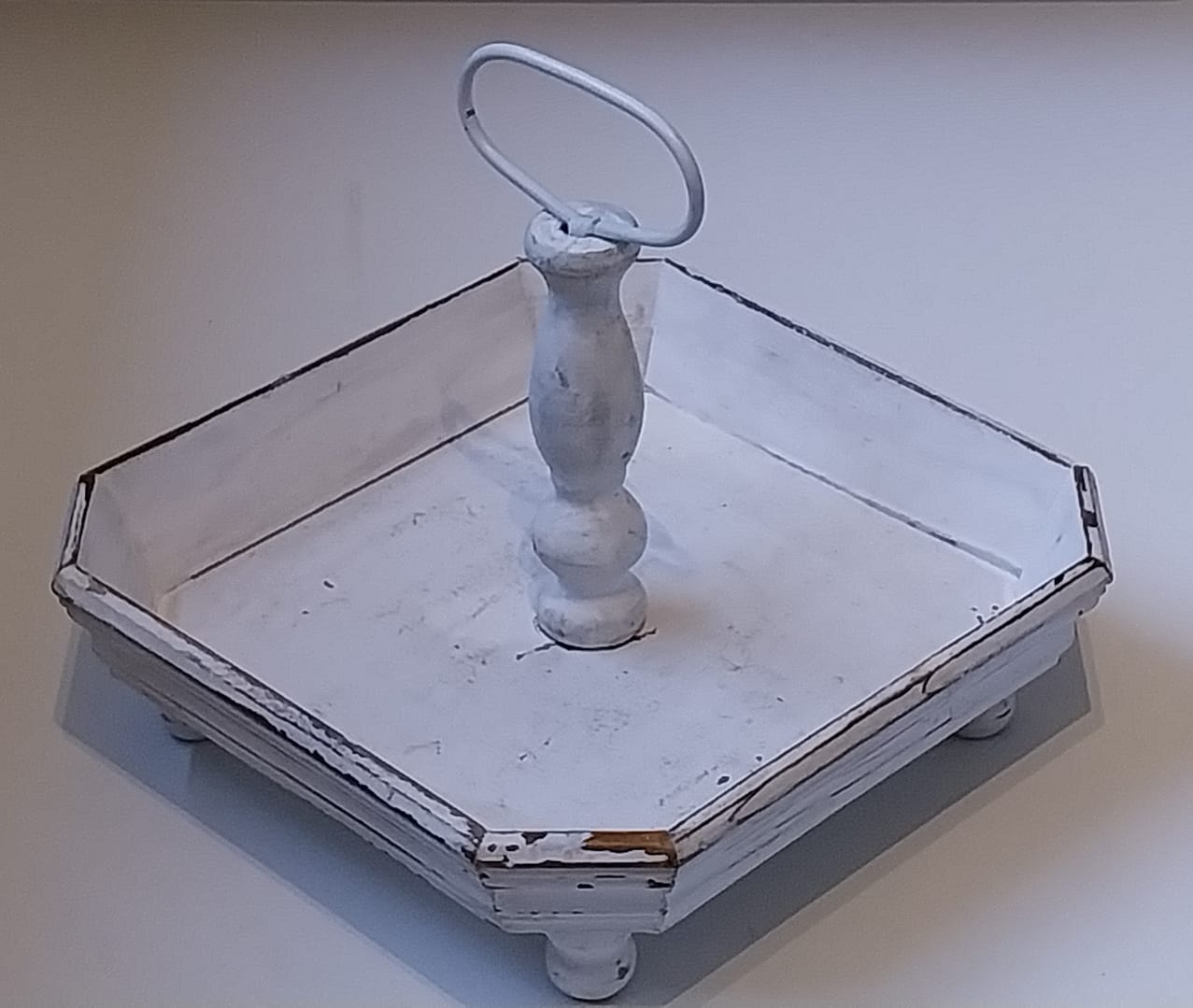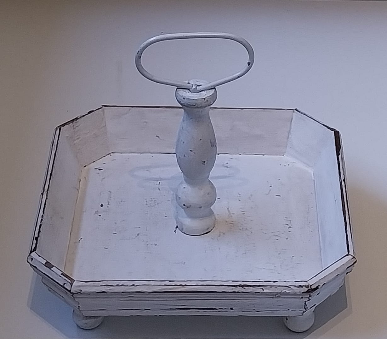 • Leuke brocante etagère voor op uw tafel, kast e.d. om mooie prulletjes op te etaleren. staat op 4 pootjes