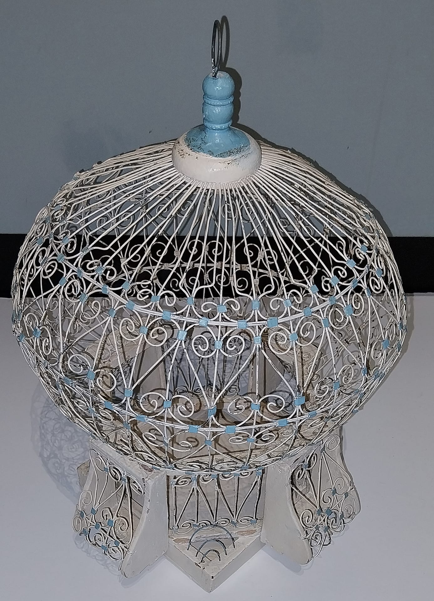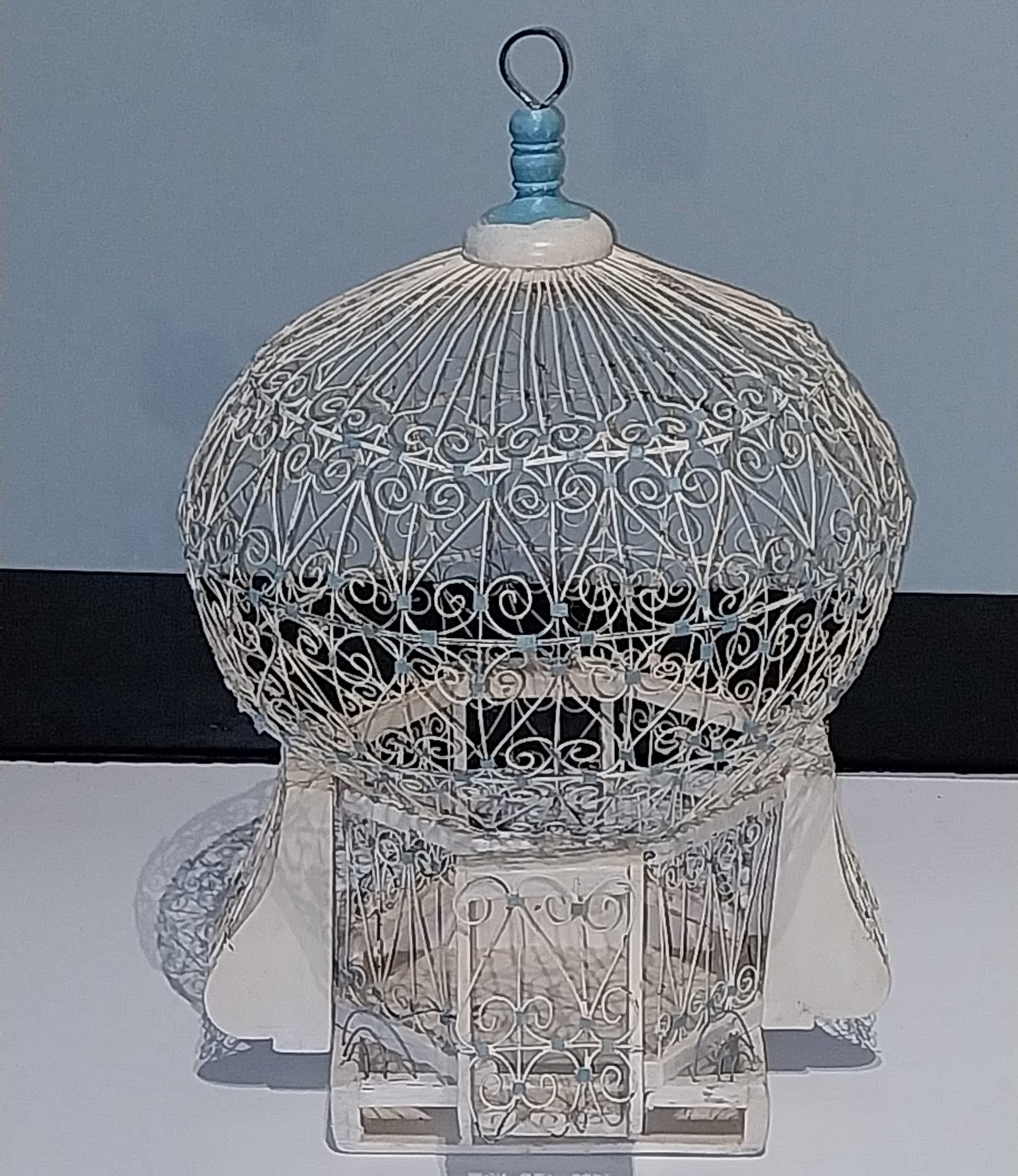 • Handgemaakte vogelkooi uit hout en metaal met verfijnde handbeschildering, prachtige vormgeving en zeer gedetailleerd versierd.