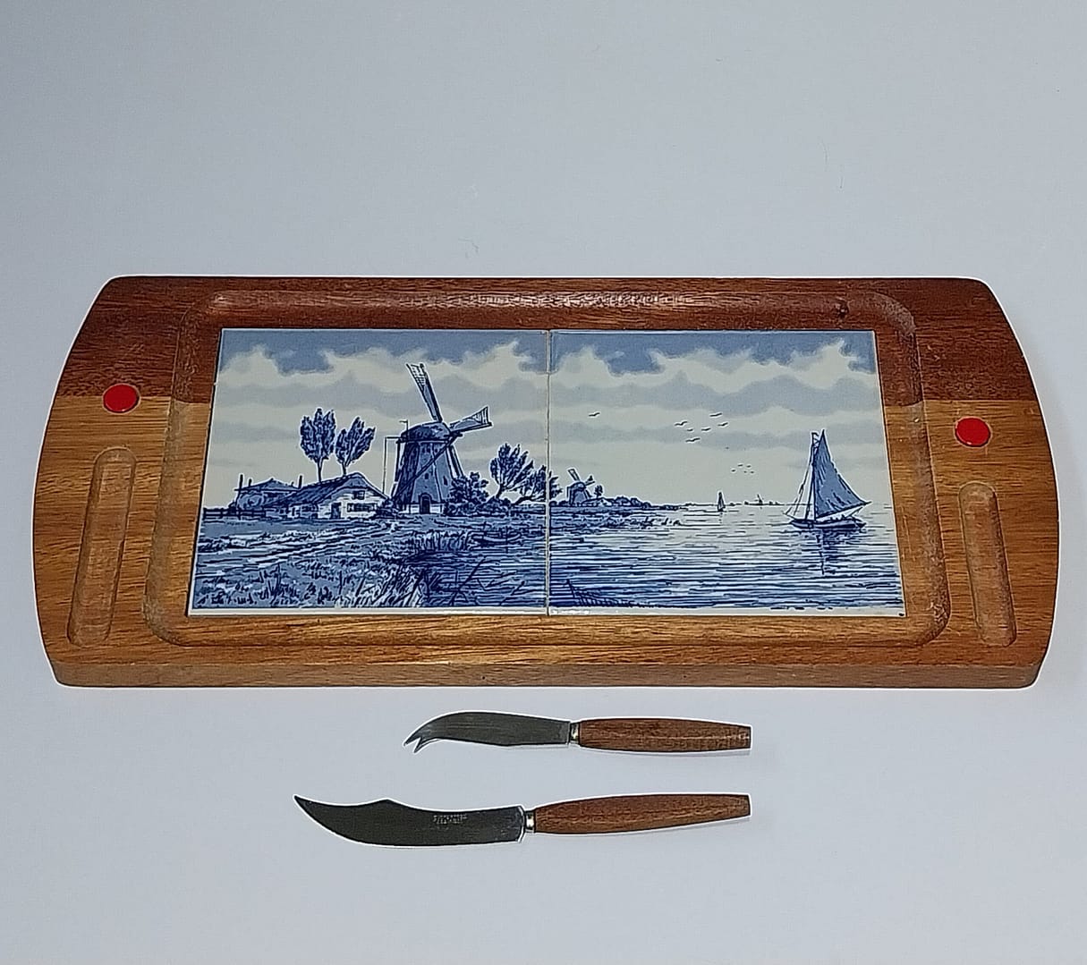 Delfsblauw kaasplankje, compleet 2 mesjes