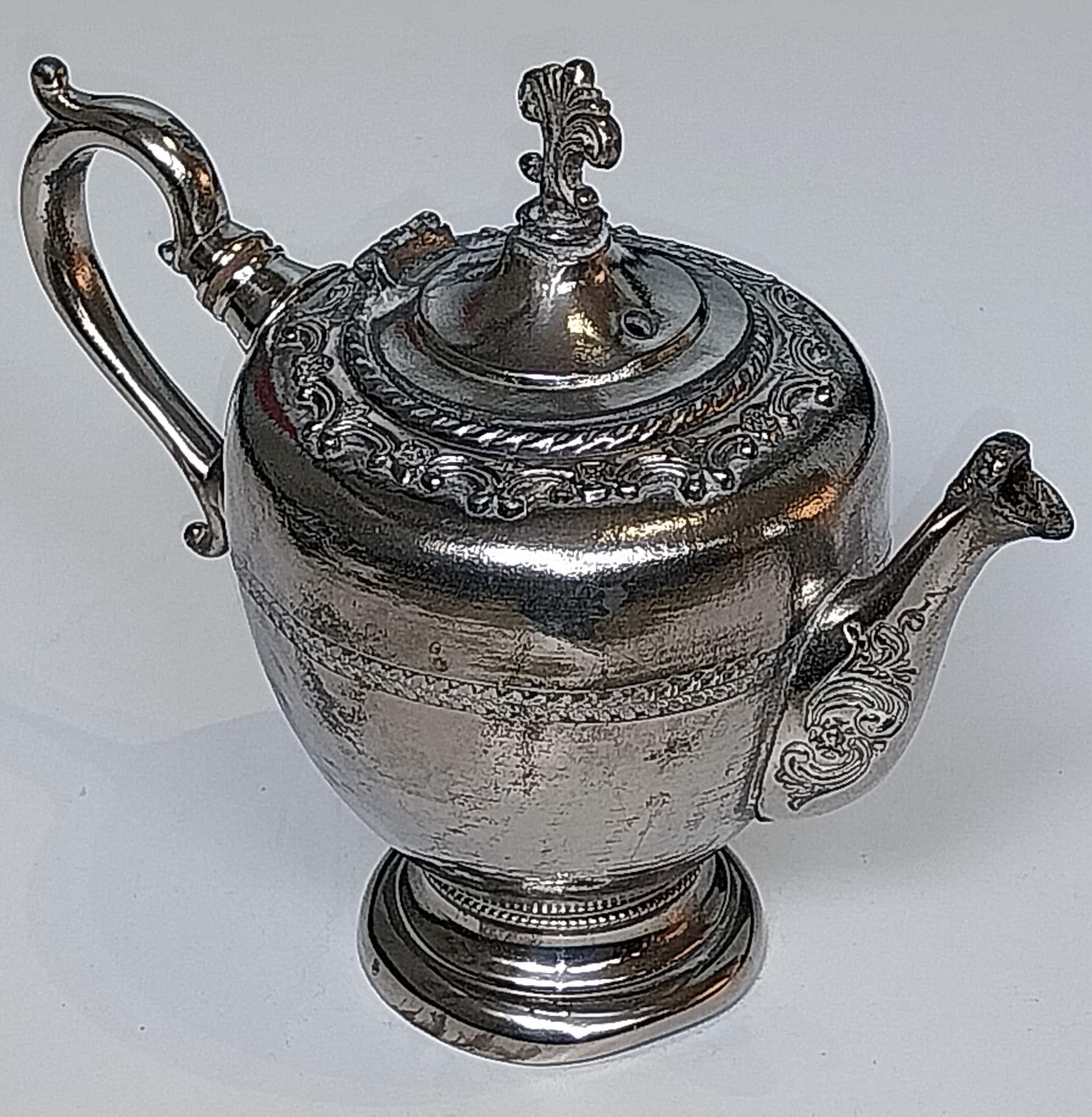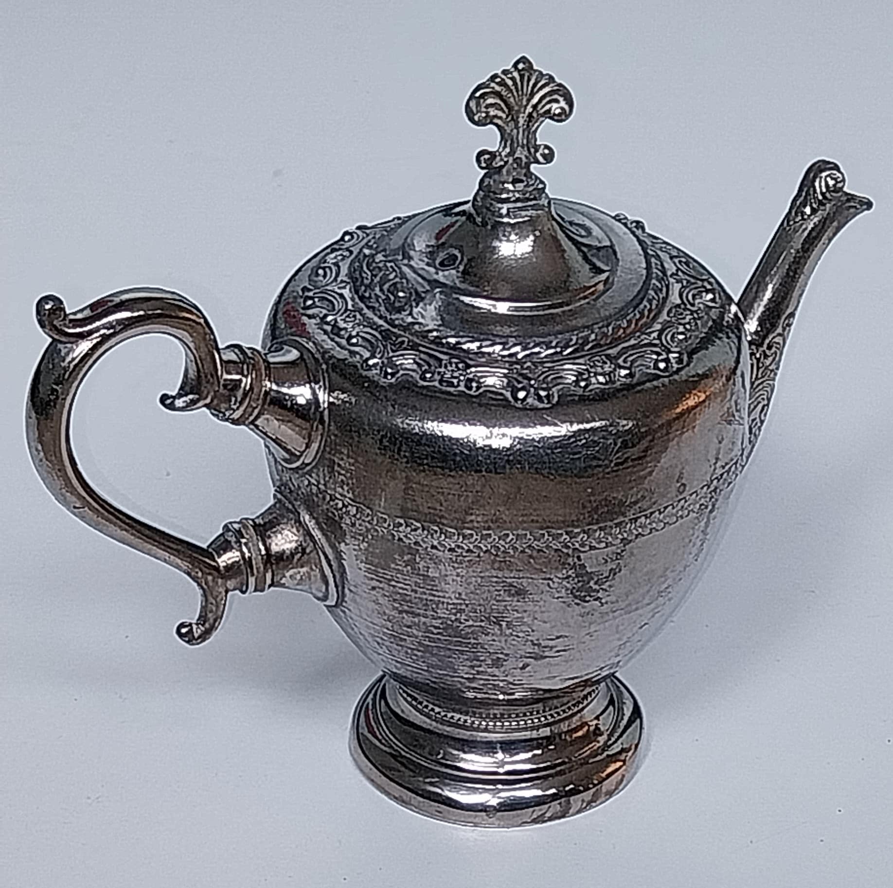 Edeltin/Zilvertin theepot met rijke versiering