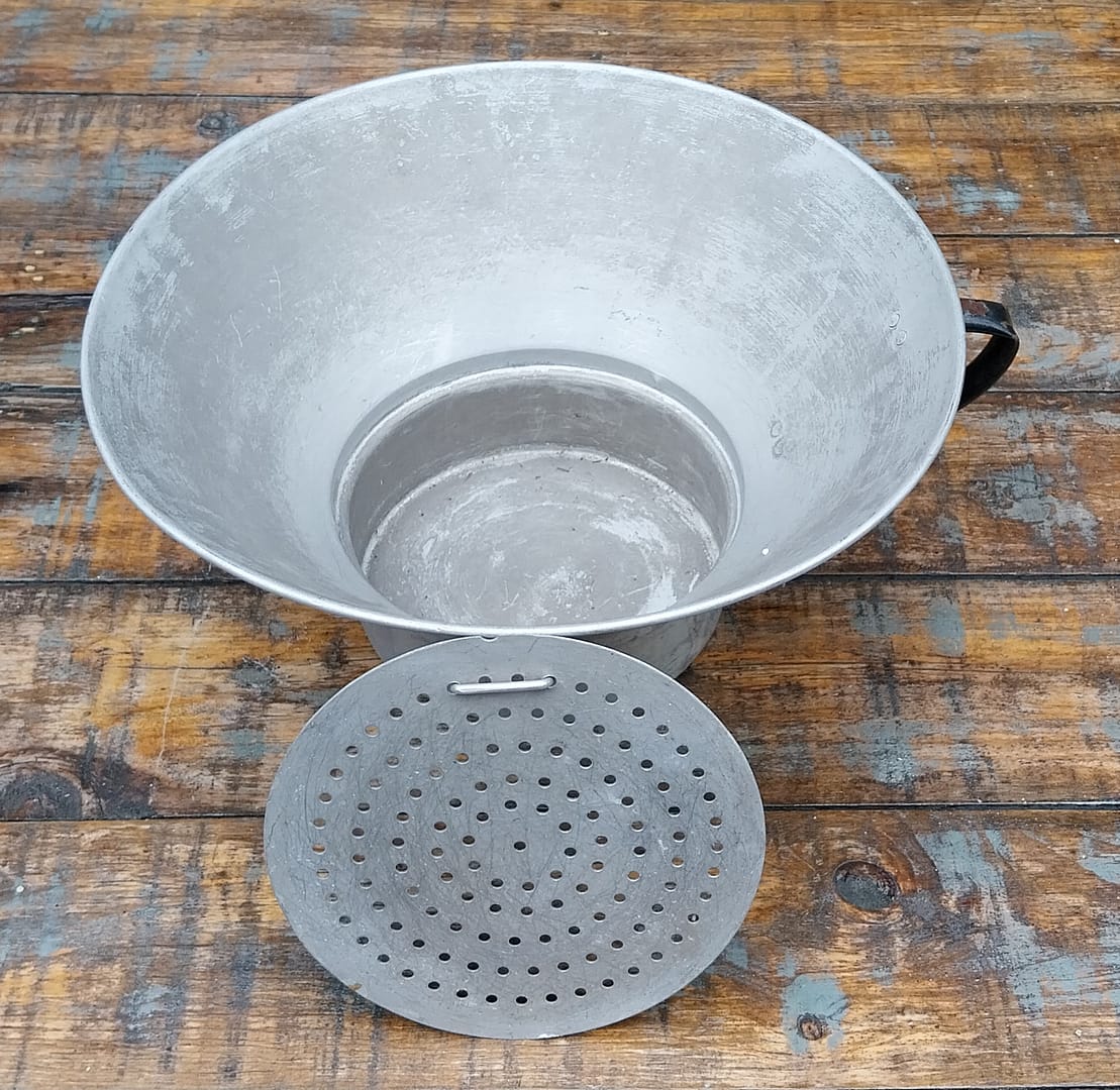 • Deze vergiet met uitneembare zeef dateert van de jaren ’50 en is afkomstig vanuit Frankrijk.
