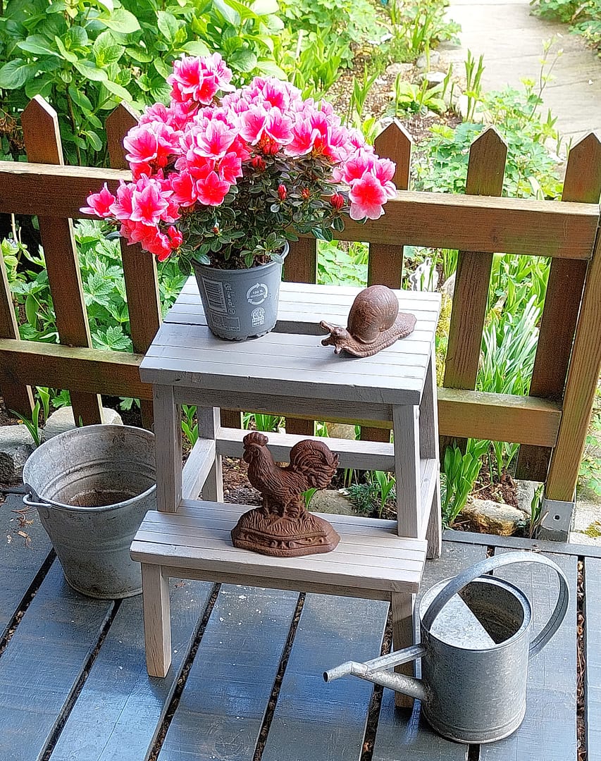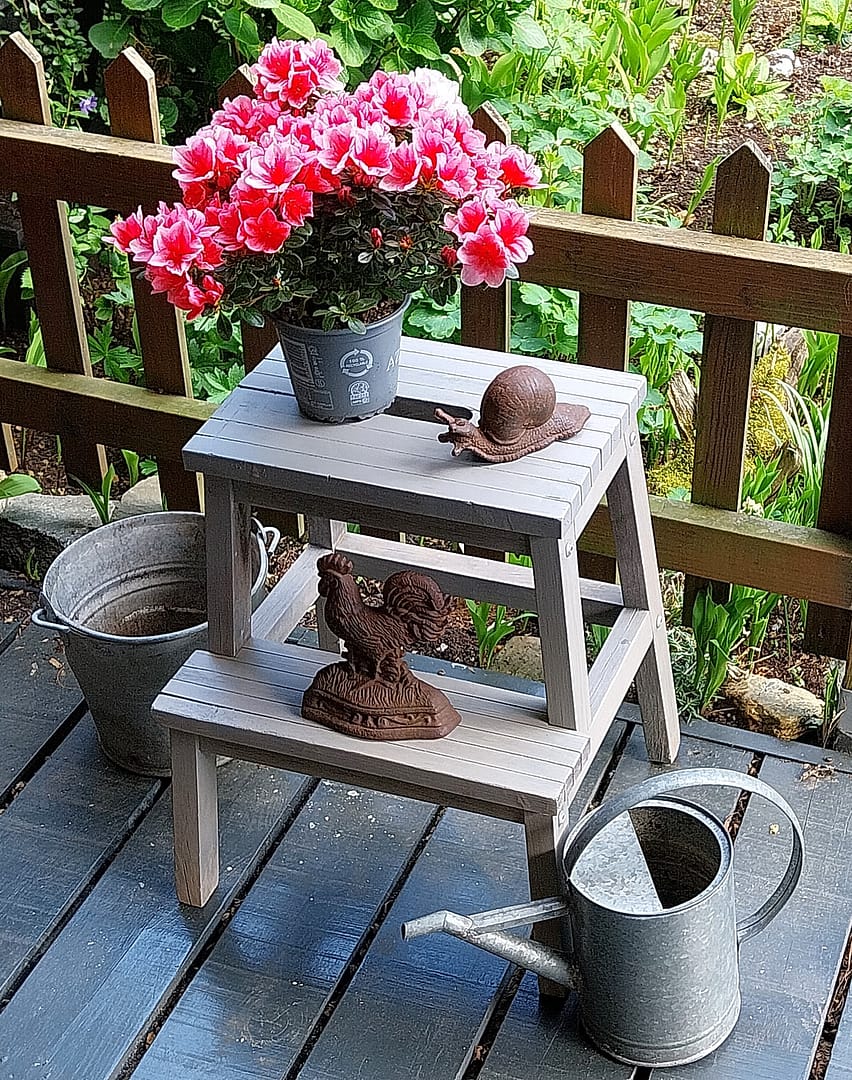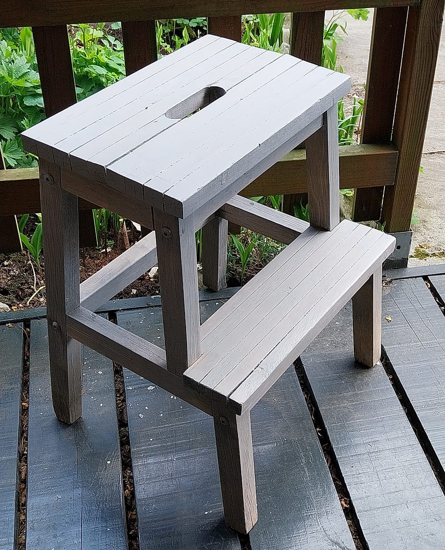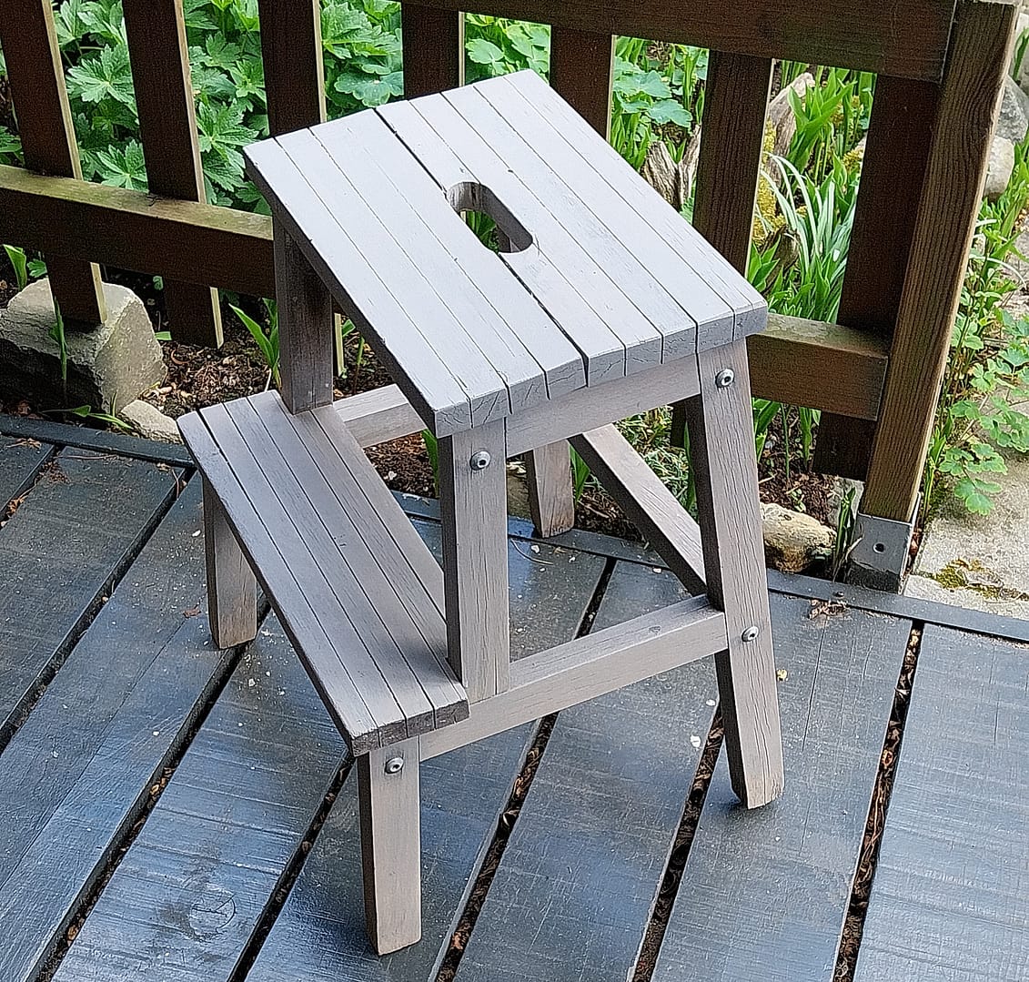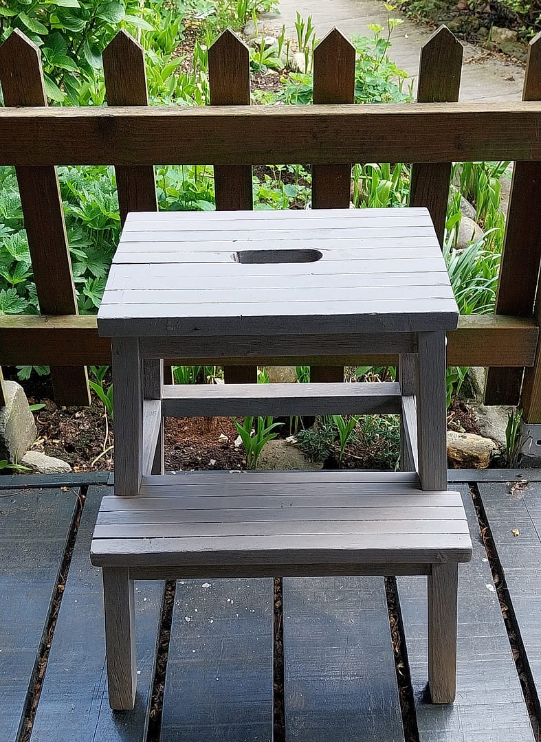- Leuke trappetje/plantentafeltje heeft 2 trede is behandeld met Grey Wash. Geschikt als opstapje, krukje of decoratieve standaard voor bijvoorbeeld planten en woonaccessoire.