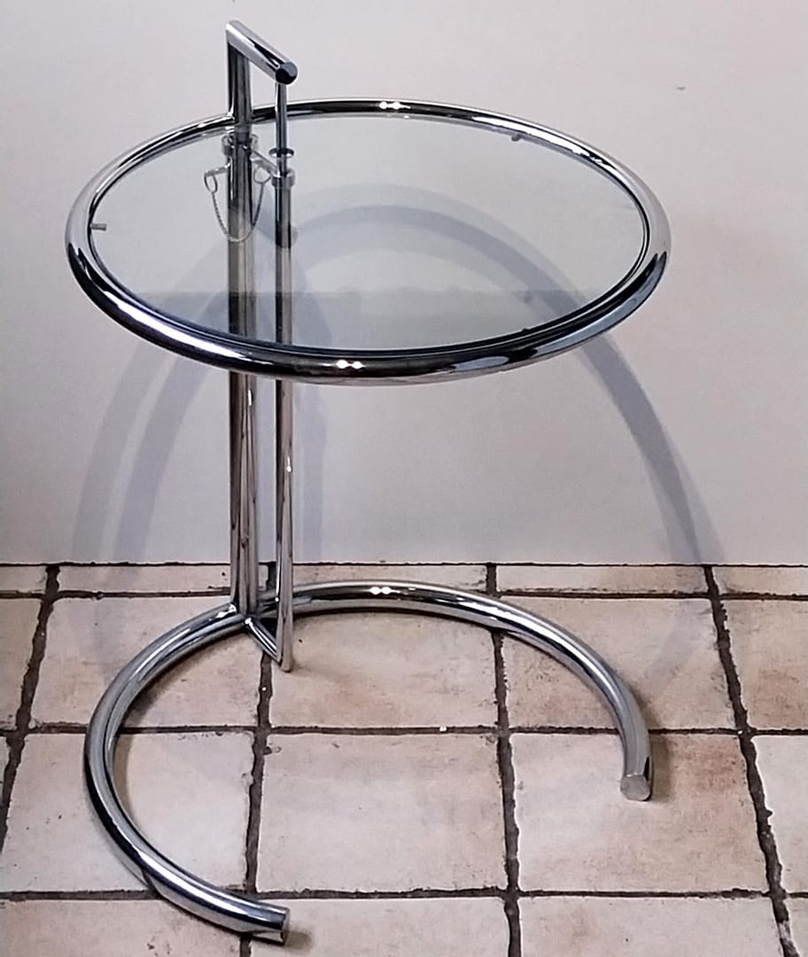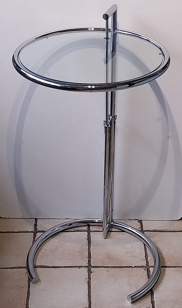 Iconische ronde en in hoogte verstelbare tafel, naar het ontwerp van Eileen Gray.