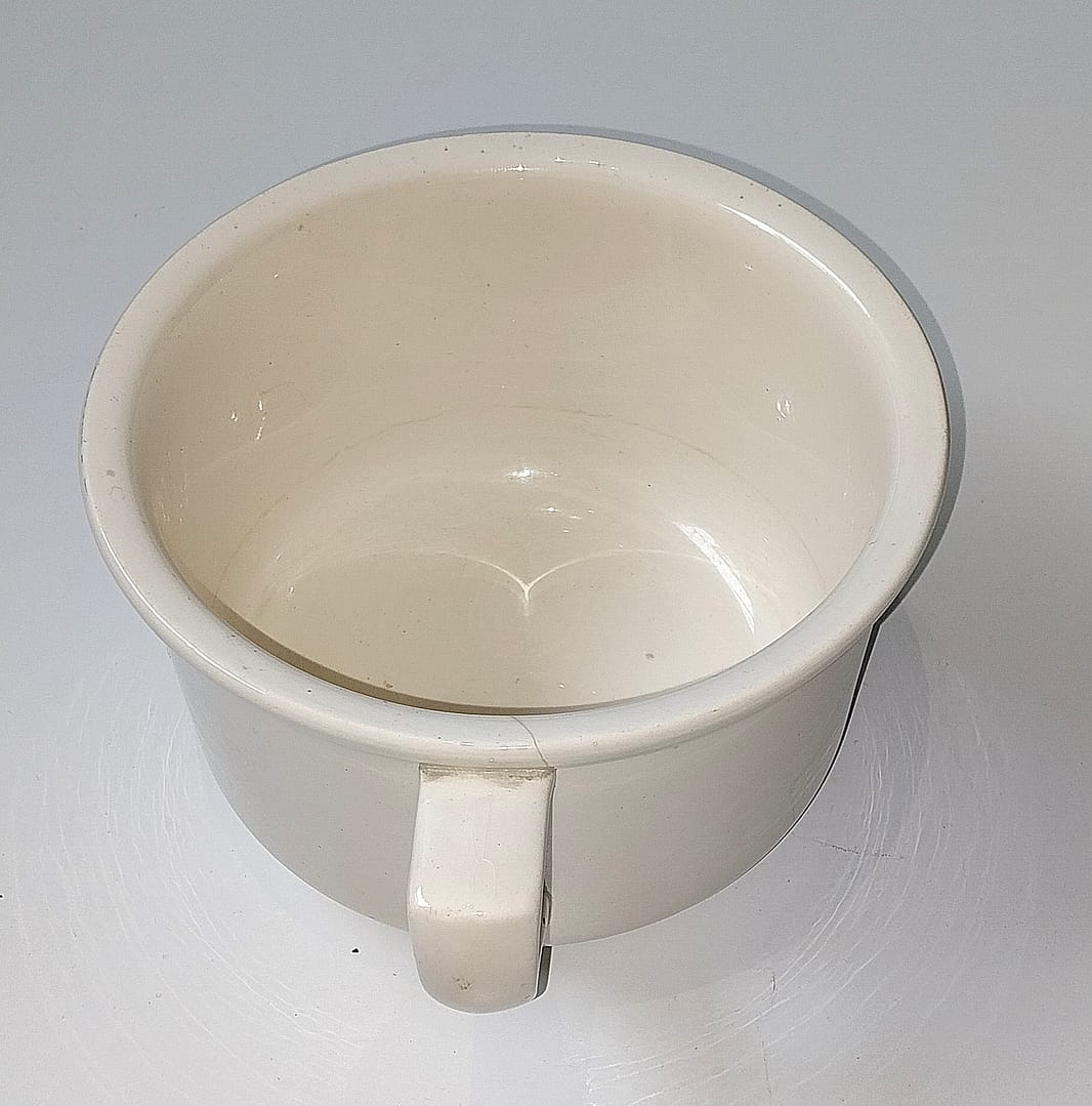 Dit is een antieke keramische kamerpot (ook wel ‘po’ of ‘nachtspiegel’ genoemd).