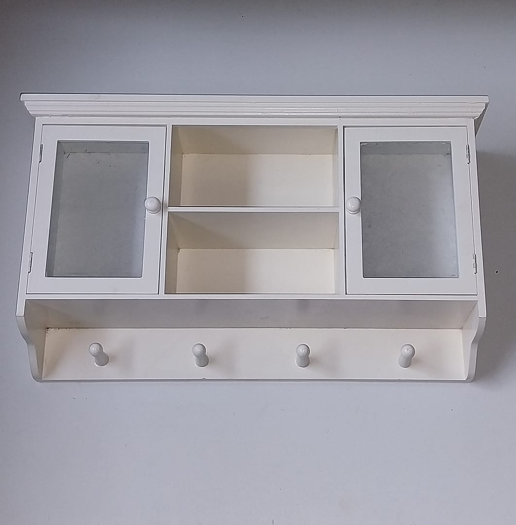 Leuk vitrine wandkastje met kapstokje