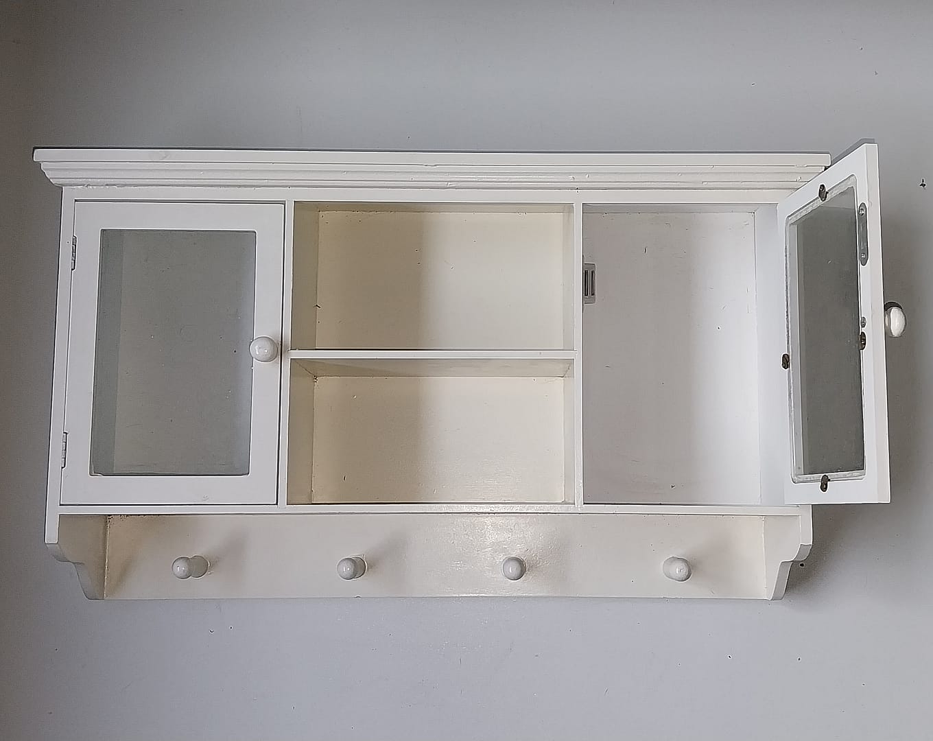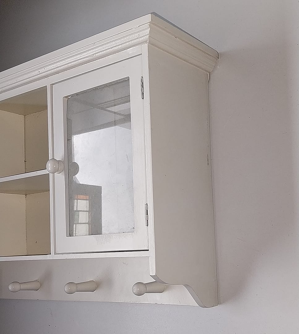 Wit vitrine-wandkastje met kapstokje