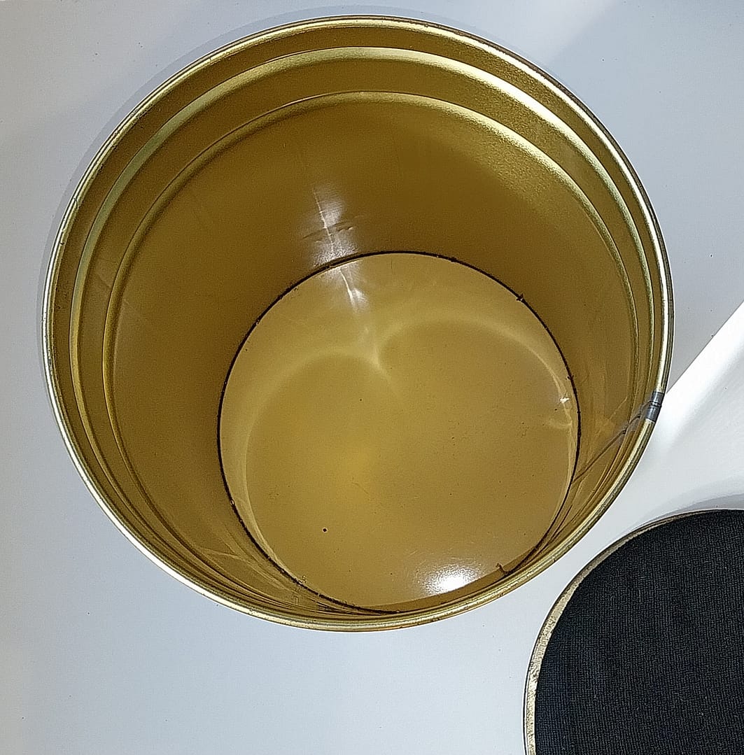- Het item is vervaardigd uit blik en voorzien van een deksel met kussentje.