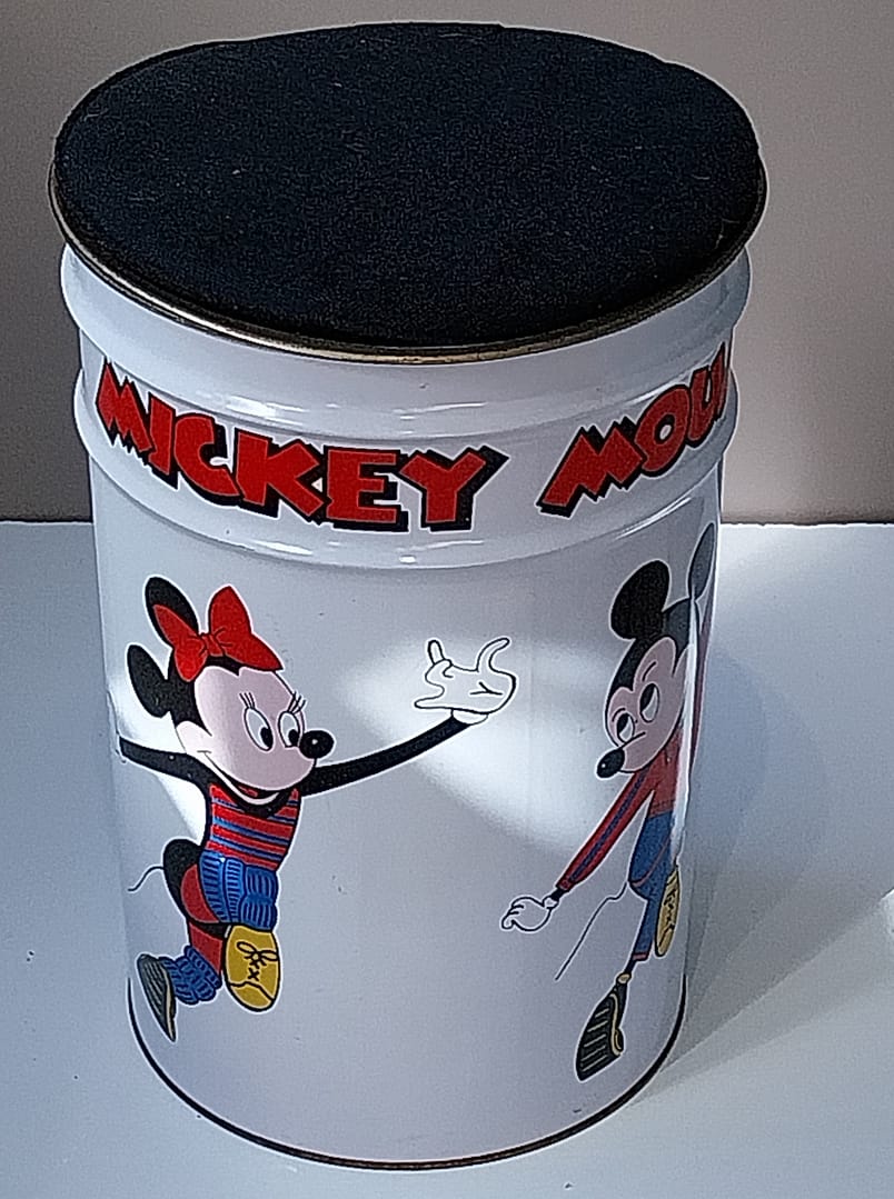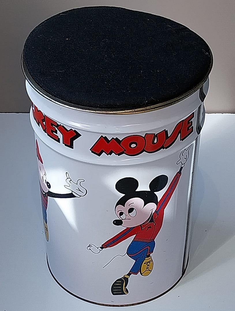Een leuk en in goede staat verkerend Mickey Mouse meubelvat, vaak gebruikt als decoratieve opbergbox of klein krukje maar zou ook als prullenbak kunnen functioneren.