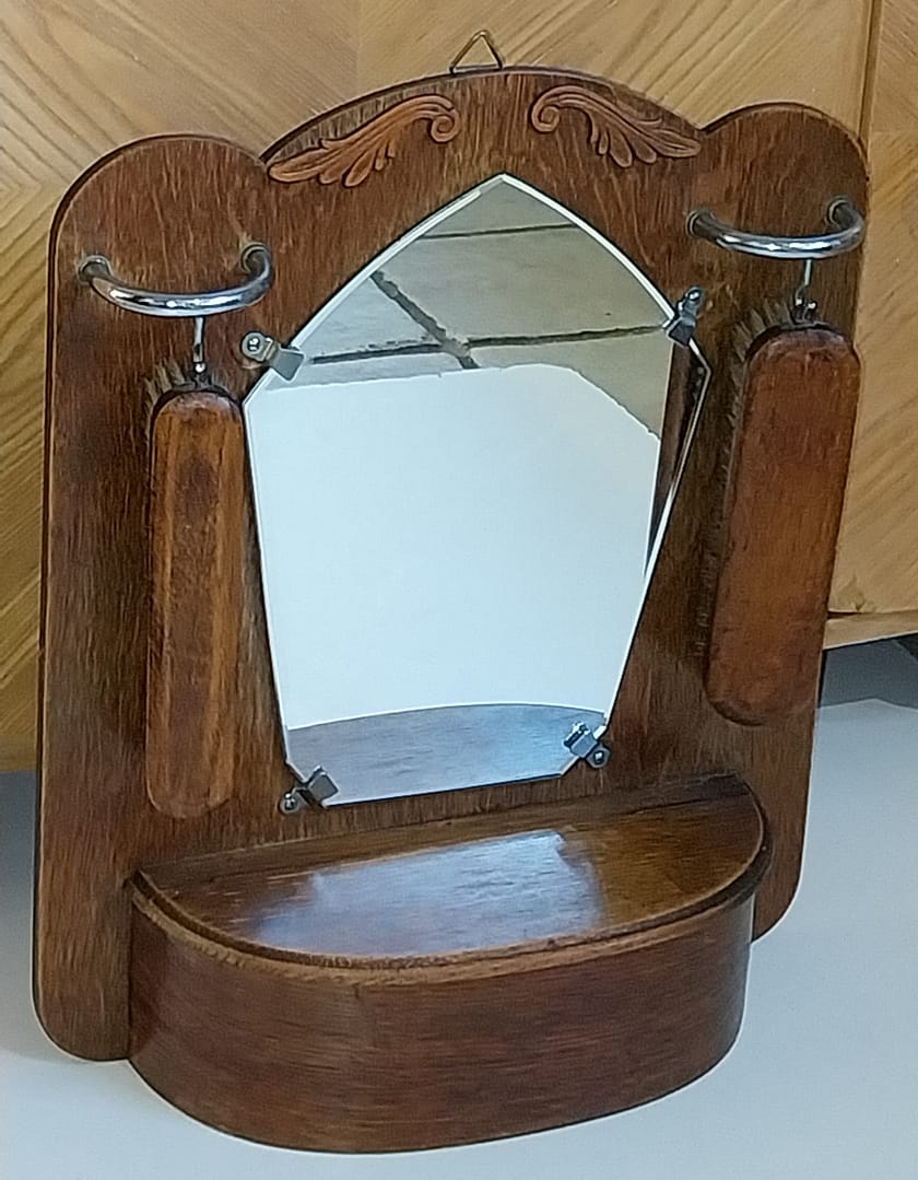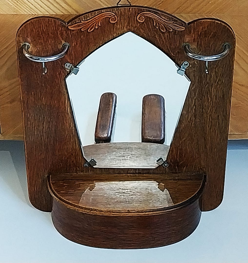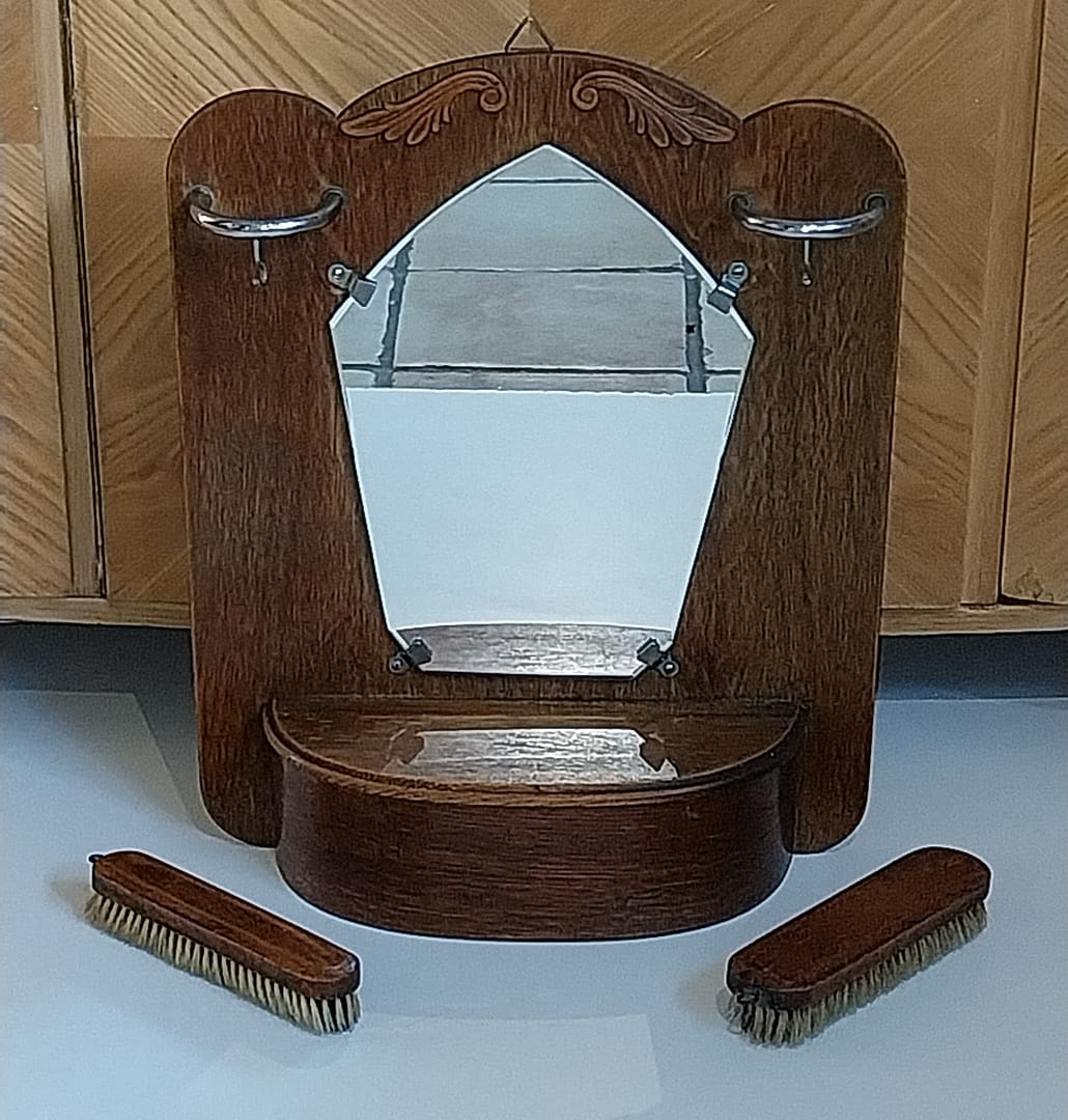 Oud Hollandse hal spiegel met borstels en kammenbak, ca 1950.