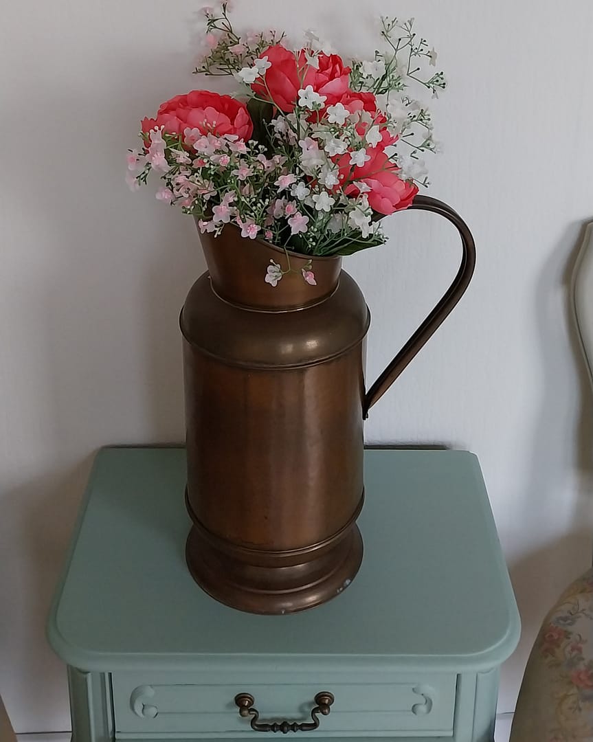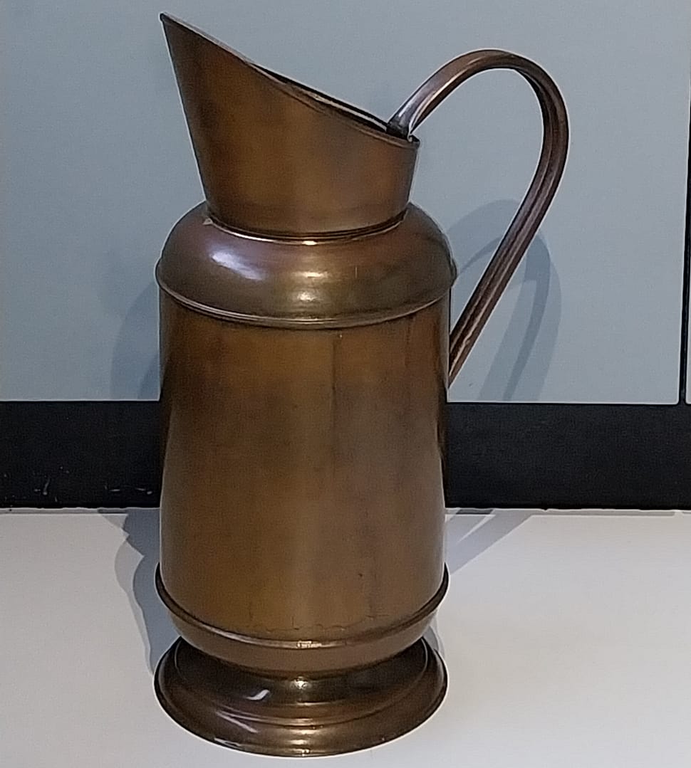 - Imposante zware koperen kolenkit van begin 20e eeuw, grote schenktuit met groot handvat.