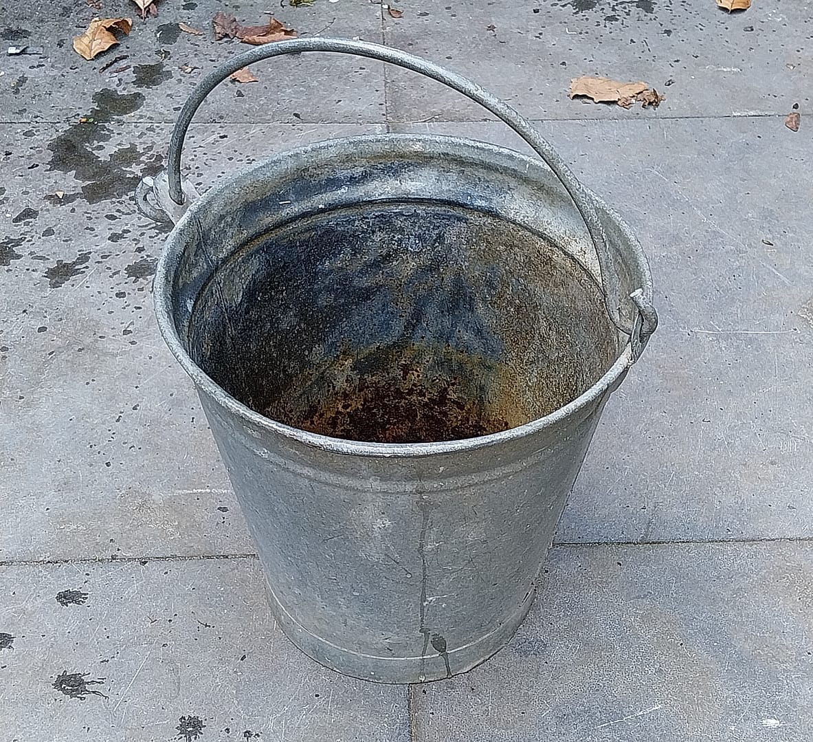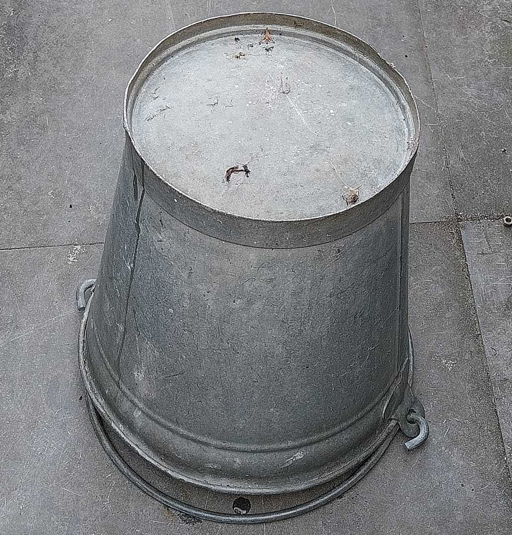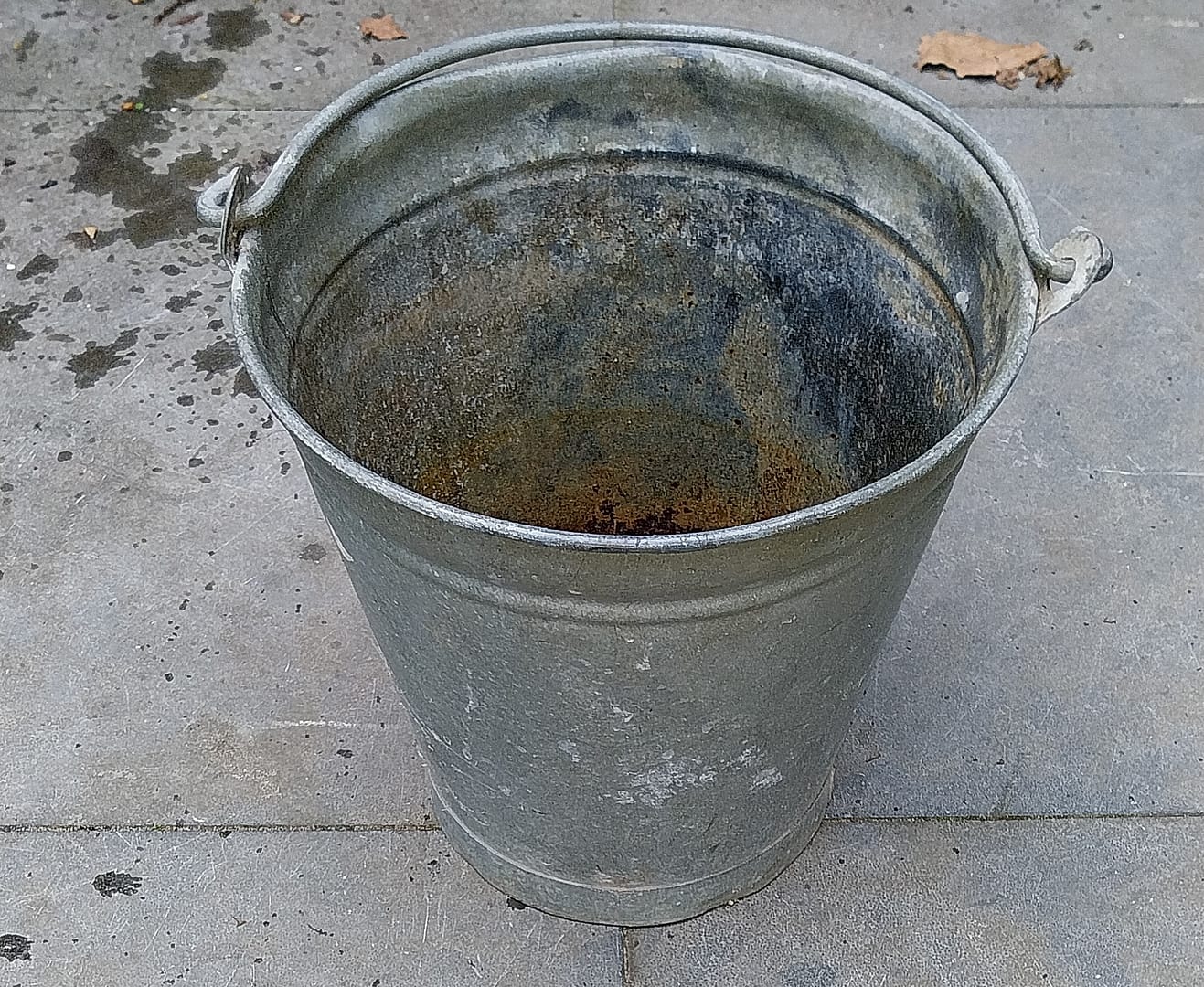 - Mooie oude en in goede staat verkerende zinken emmer, geen scheurtjes of gaatjes. Emmer kan nog gewoon gebruikt worden en heeft een inhoud van 12 liter