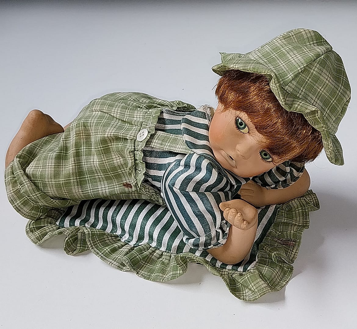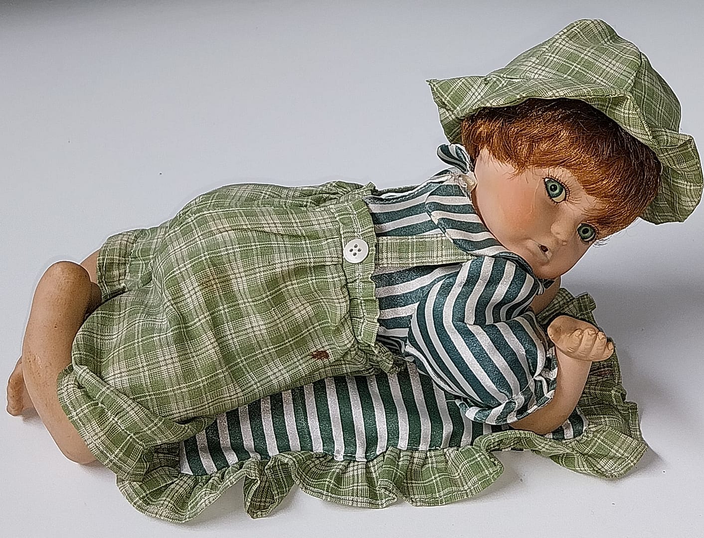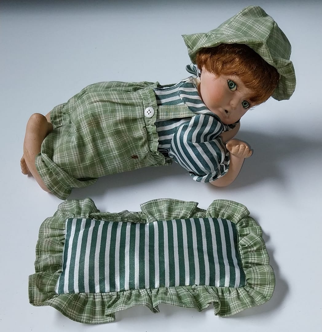 - Deze porseleinen babypop, een heerlijk ventje liggend op een kleedje verkeert in zeeg mooi staat. Erg mooie kleertjes en een speelkleedje. De pop heeft een lengte van 30 cm. Made by francy dolls en draagt de naam madeleine. De handjes, beentjes en het hoofdje zijn van echt porselein en met de hand beschilderd en afgewerkt.
