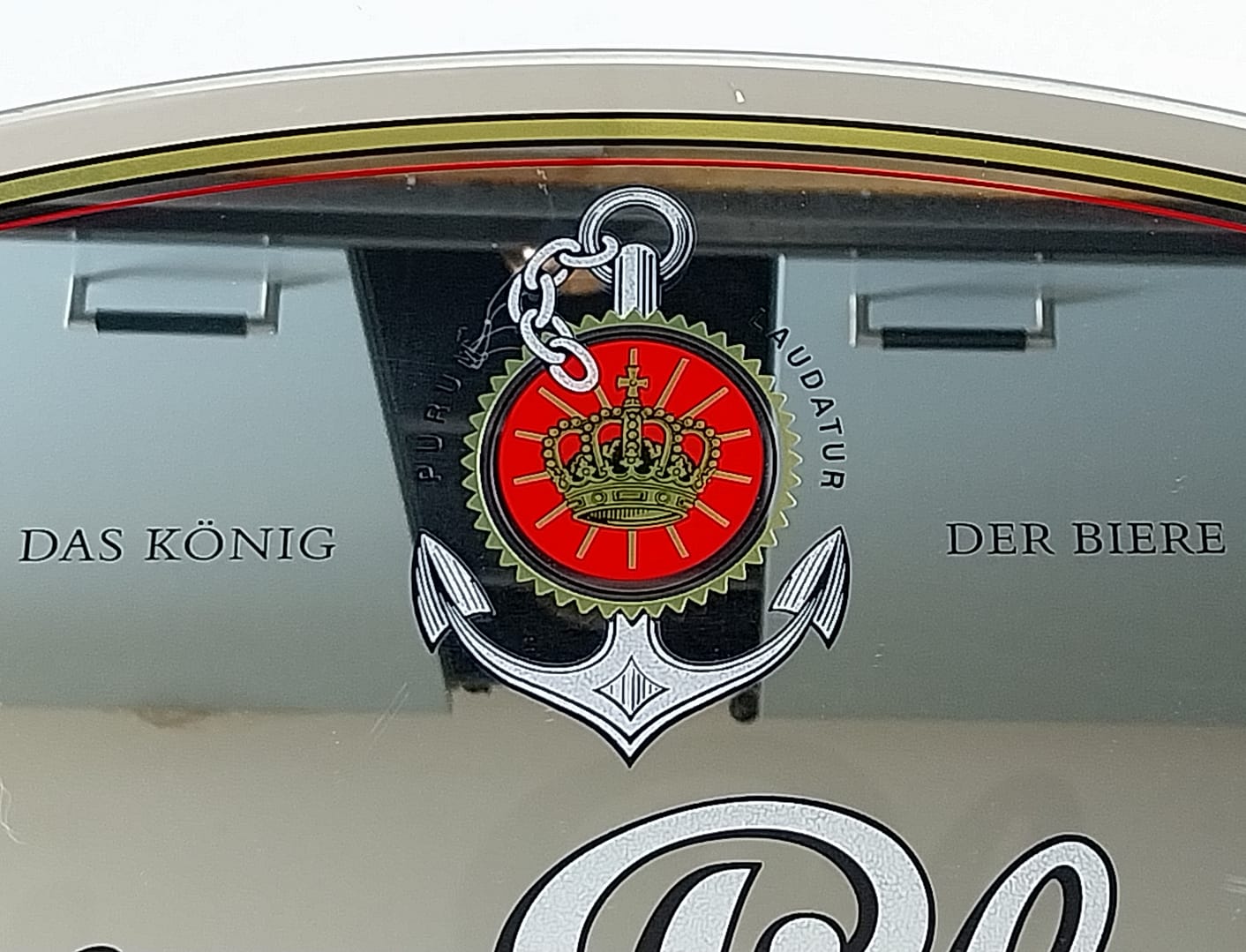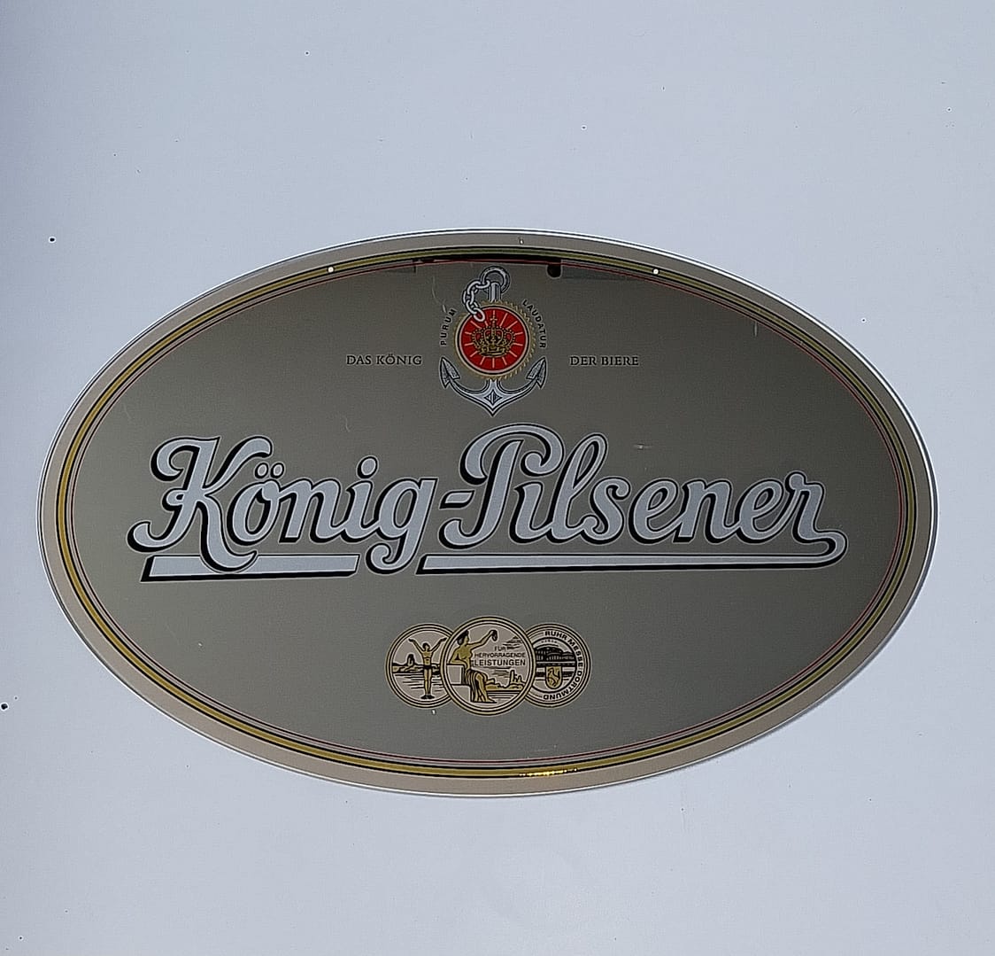 - Reclame spiegel van König Pilsener met een ovale vorm , glas onbeschadigd verkeert geheel in goede staat.