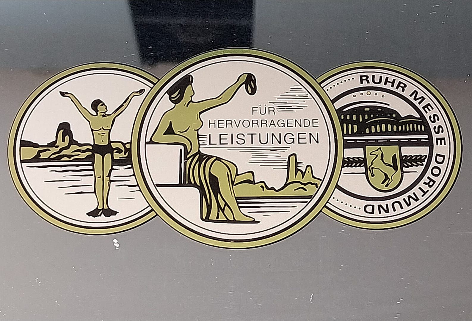- Tekst op de spiegel: “Für hervorragende leistung. Ruhr Messe Dortmund“.