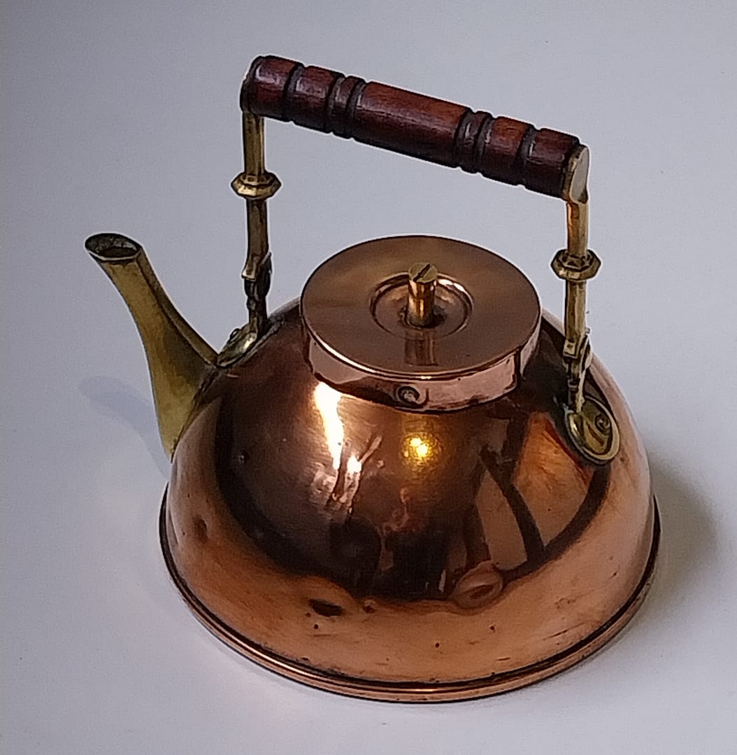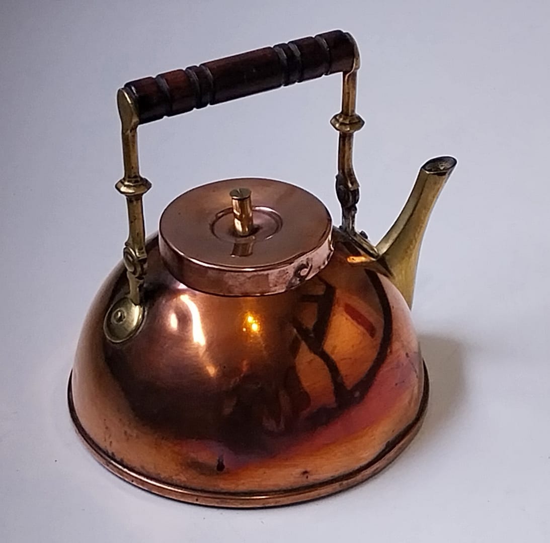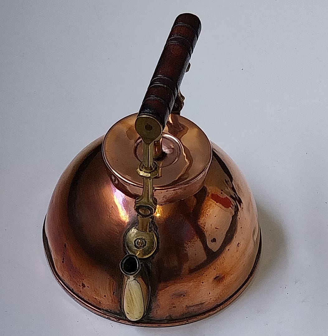 Rood Koperen/Messing ketel met houten handgreep, begin 1900
