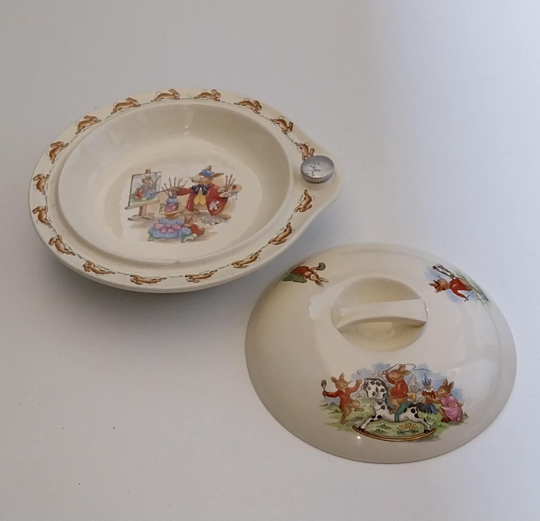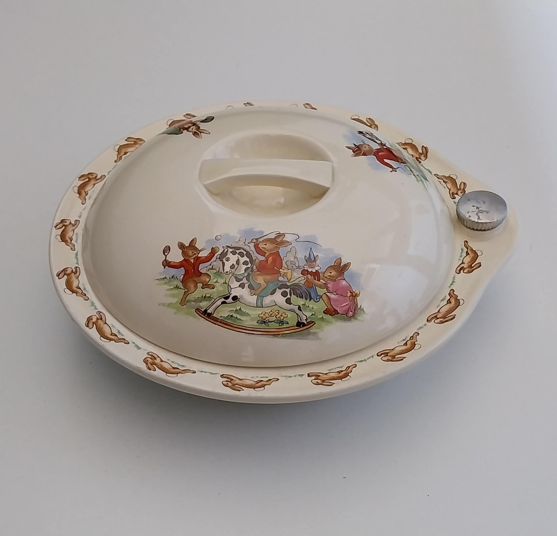 - Een unieke vondst een Royal Doulton Bunnykins warmhoudbord, ontwerp de portretschilder. Dateert uit de jaren ’50