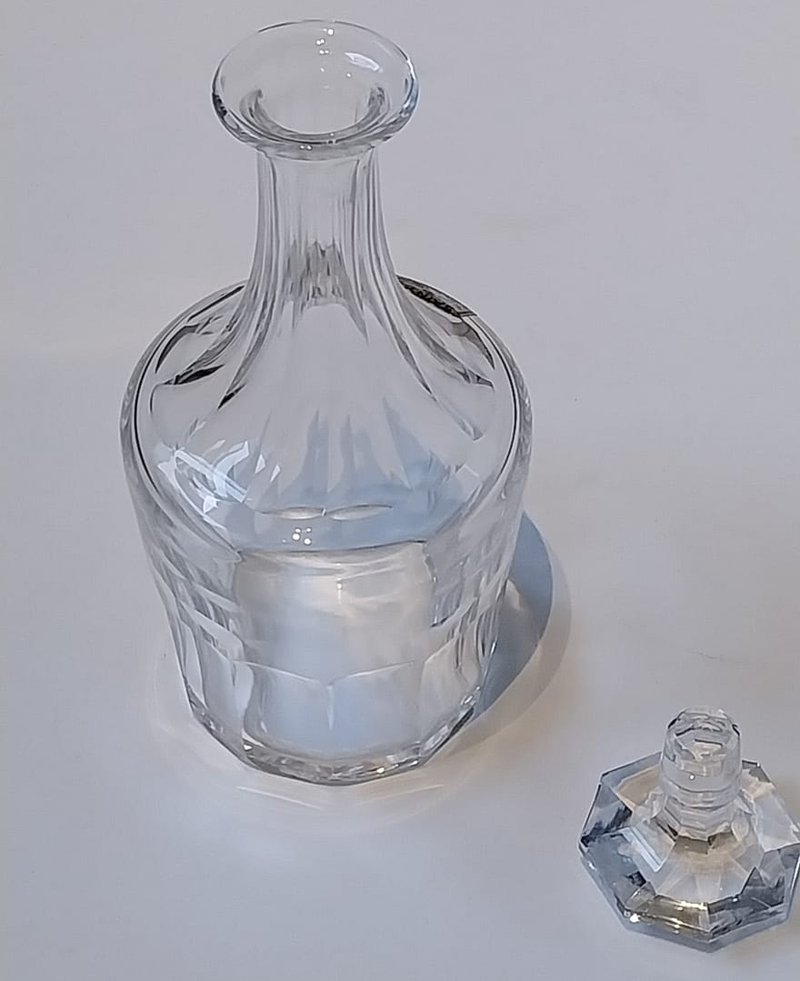 - Deze karaf behoort tot het klassieke Caton-model, vervaardigd vanaf de 19e eeuw en bewonderd om zijn tijdloze ontwerp en uitstekende kristalkwaliteit.
