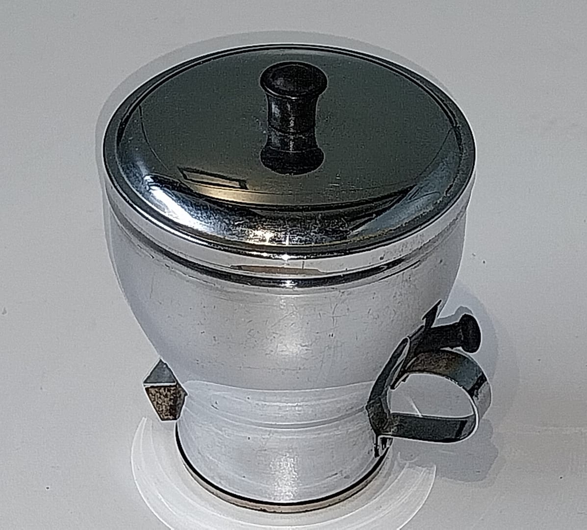 - Dit is een automatische suikerstrooier (ook wel suikerschuif of suikerknip) van het merk Jewego, te Den Haag en dateert uit de jaren 50/60.
