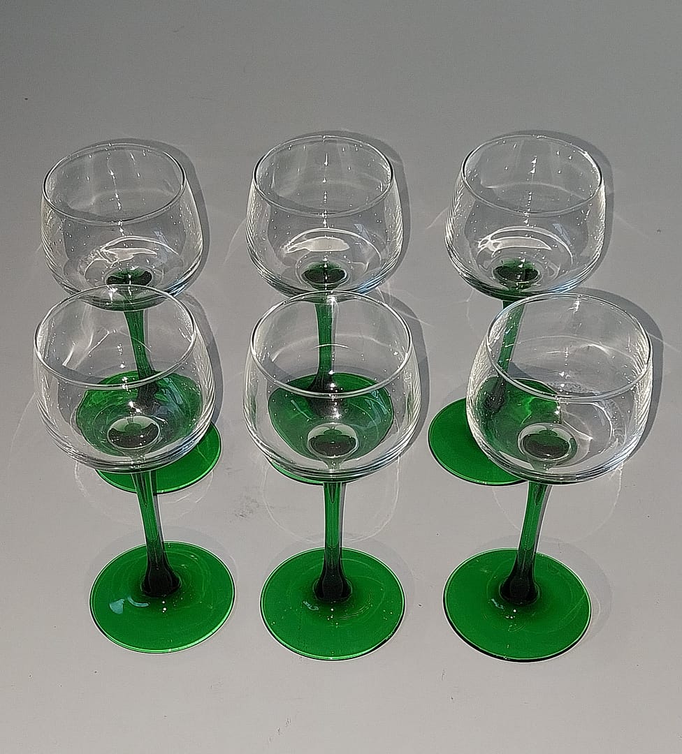 6 st. Wijnglazen van het Franse merk Luminarc, onderdeel van de Arc Group. Ze staan ook bekend als ‘Elzas’ of ‘Vins Moselle’ glazen en waren populair in de jaren ’70 en ’80.